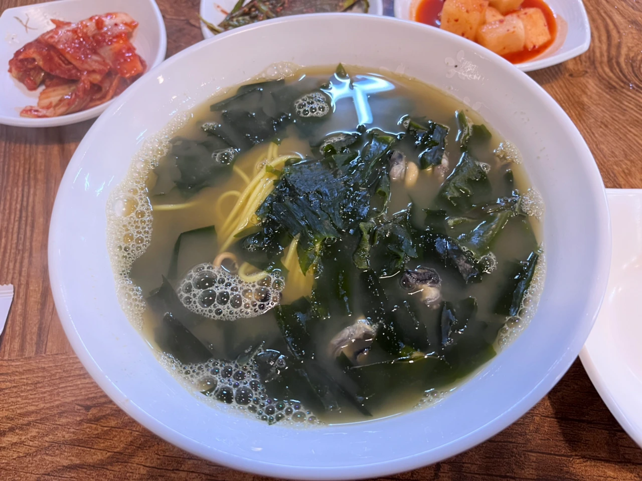 보말 국수를 시켰다. 그곳에 계신 분이 친절하게 서빙도 해주시고 앞접시도 주셔서 더 기분 좋게 식사를 할 수 있었다. 그곳의 보말 국수는 치자로 색상을 내고 미역과 보말을 넣어 끓인 방식이었다. 안타깝게도 살짝은 비린내가 났다. 하지만 양도 푸짐하고 국수도 안 붇고 맛있어서 후추를 뿌려 다 먹었다. 그곳의 사장님은 나올 때 친절하게 귤 하나도 주셔서 굉장히 행복해졌다.