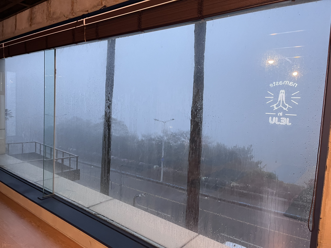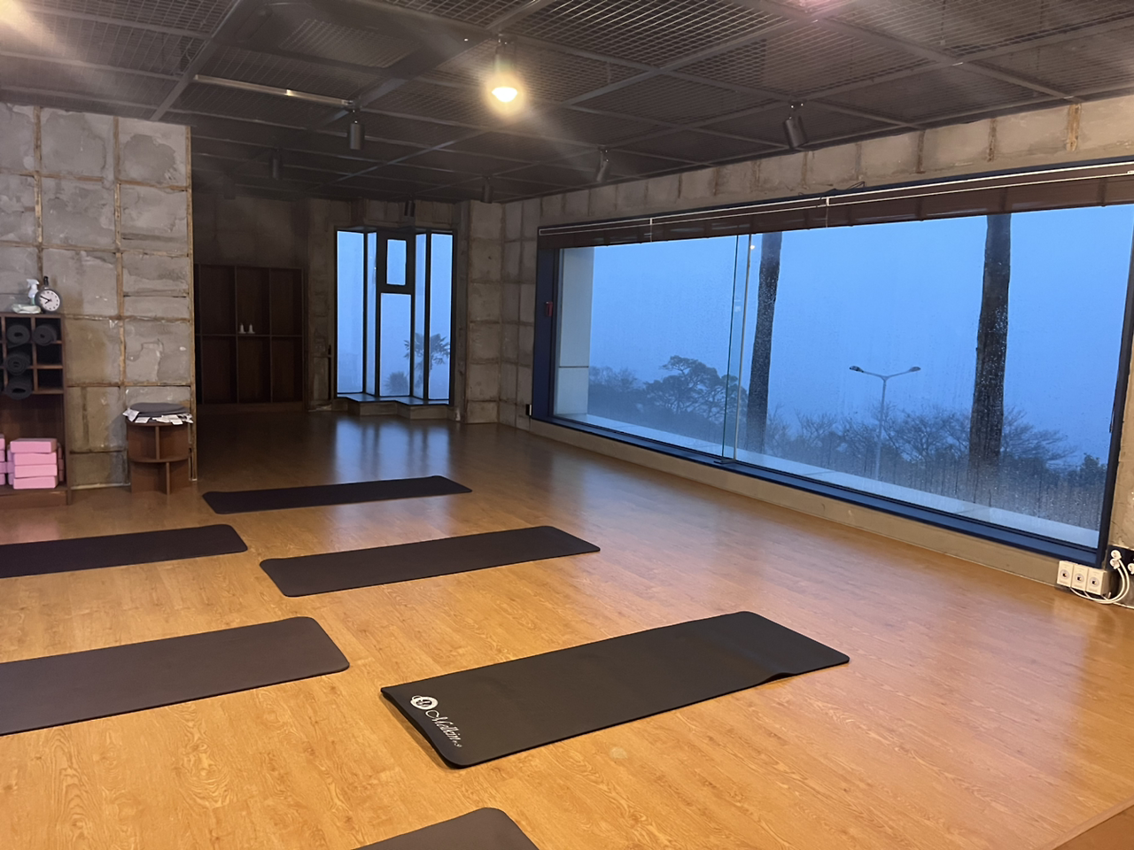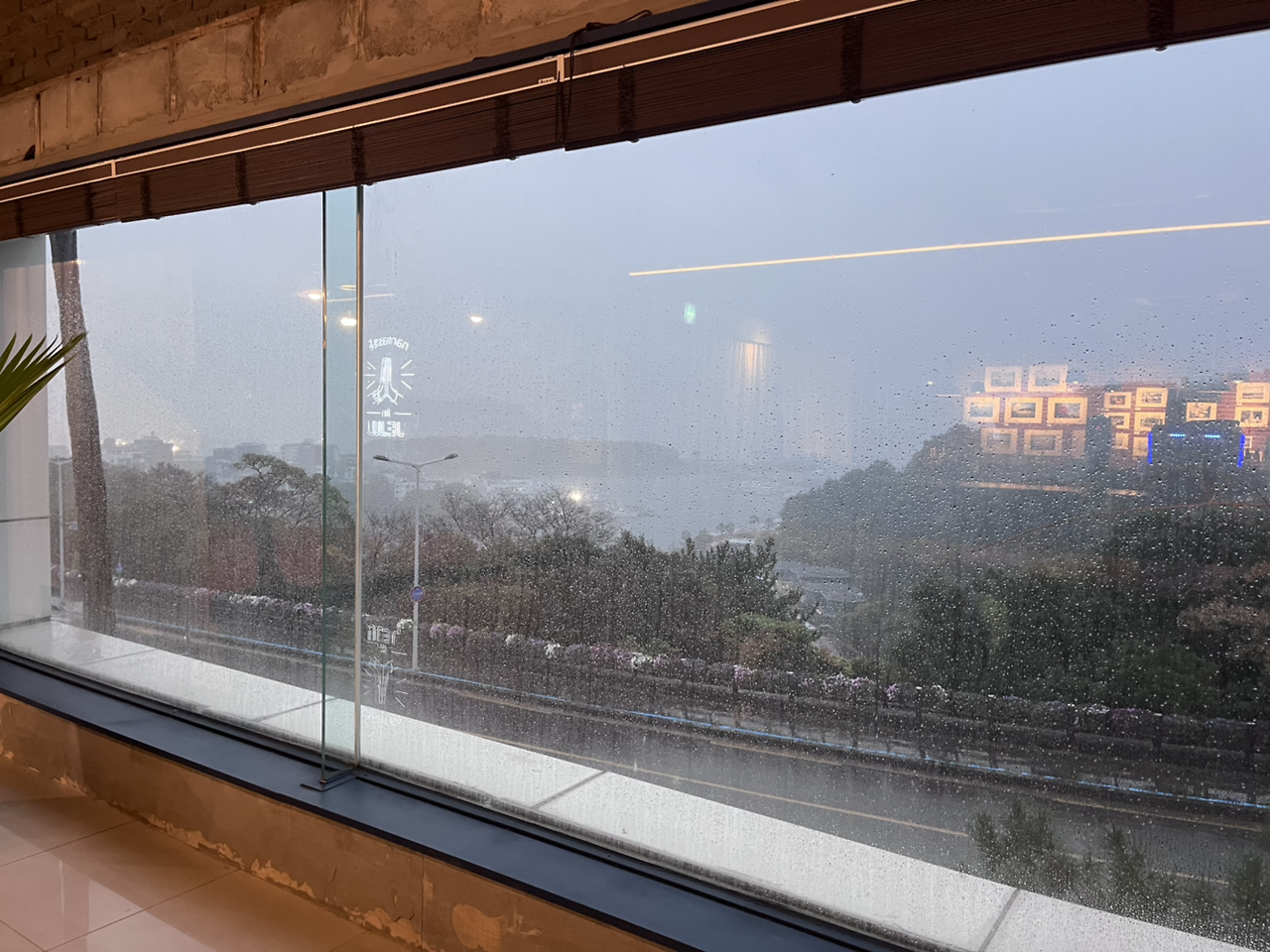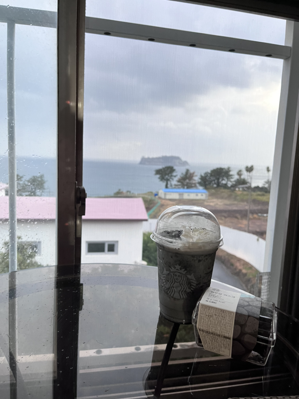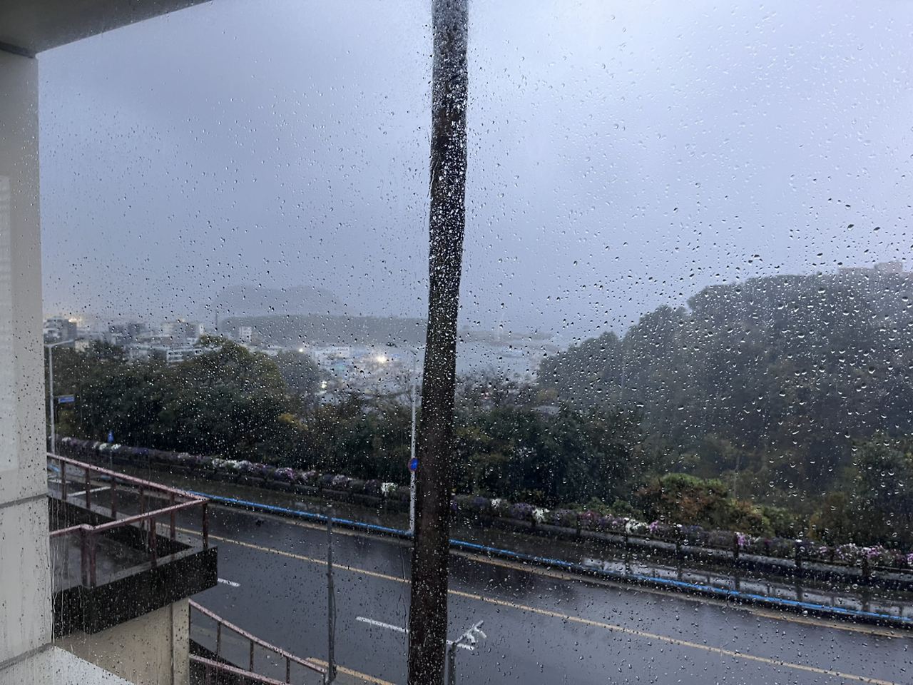 그래도 약 40분쯤엔 직원분이 오셔서 문을 열어줬다. 범섬이 보이는 바다 뷰 요가였는데 도착하자 비가 너무 미친 듯이 와서 아무것도 보이지 않았다 거의 폭풍의 언덕이었다.