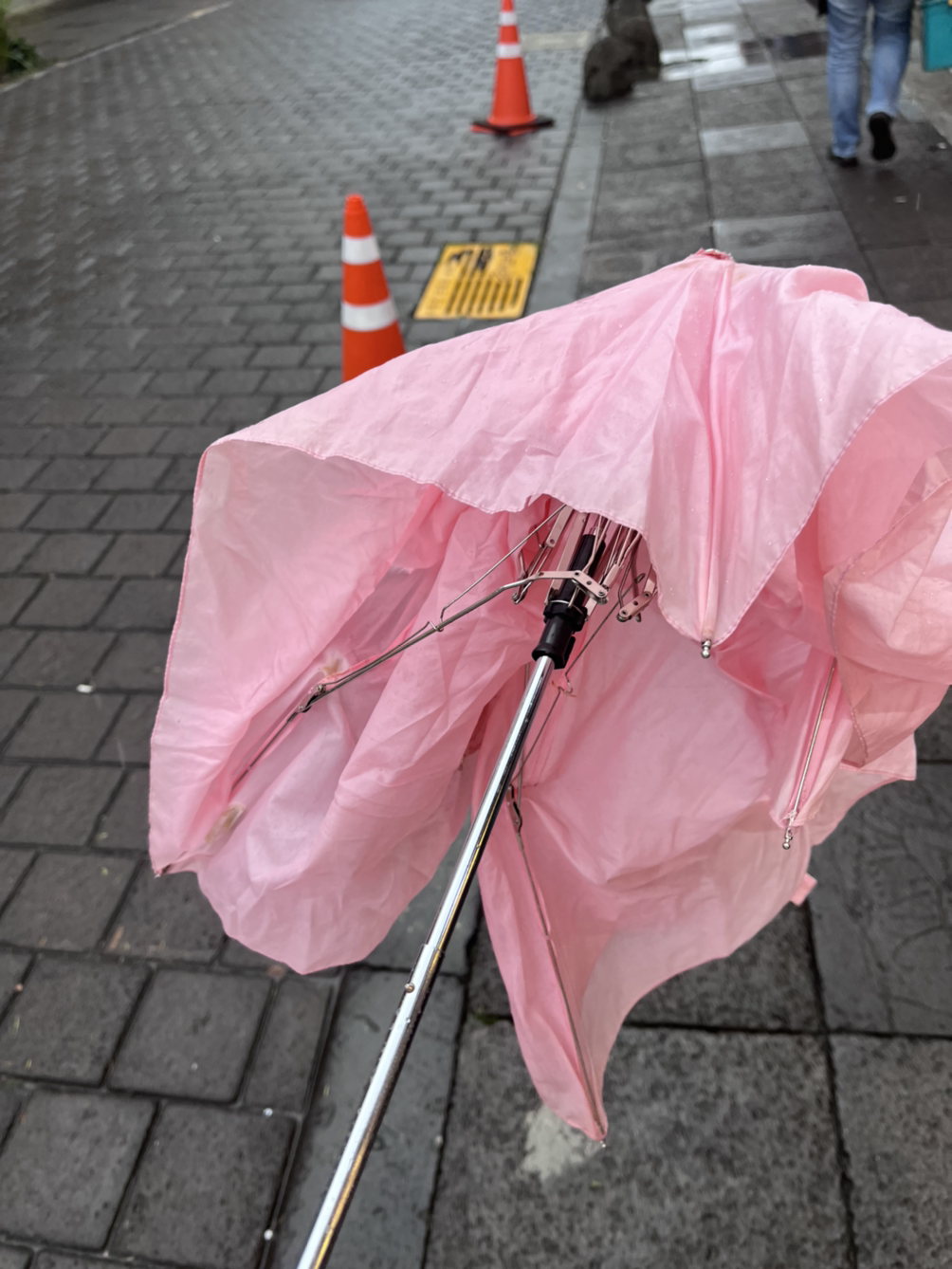 우산이 대략 10번은 뒤집어지고 아무리 비 안 오는 쪽으로 몸을 돌려도 다른 방향에서 우산이 뒤집어져서 난리 부르스였다.