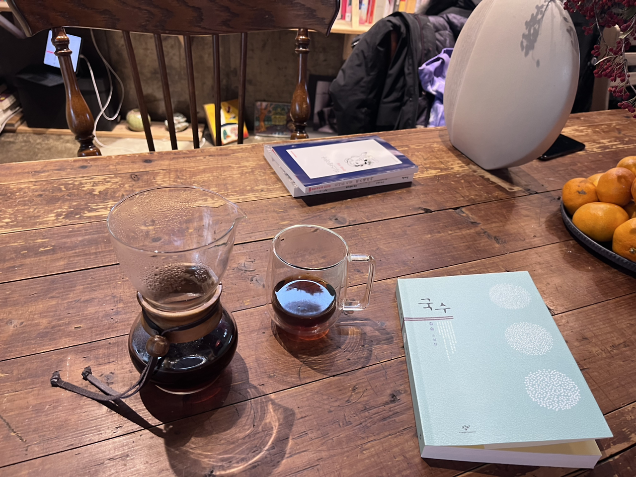 가게에서 참 좋은 향기도 나고 가게 입구도 살짝 숨겨지고 벽화에 고래가 크게 그려져서 굉장히 정말로 예술 그 자체인 가게였다. 사장님께서 책을 들여놓은 과정도 다 알려주셨다. 사장님은 무라카미 하루키 책이 너무 성적인 부분을 부각해서 들여놓지 않으셨는데, 어떤 손님은 그 부분으로 항의를 했다고 한다. 시비를 거셨다고... 가게에 있는 책은 사장님께서 읽어보시고 다 좋았던 책만을 들였다고 하셨다. 정말 공이 많이 들어간 멋진 가게였어. 학원에서 만난 분께서 추천받아 읽고 있던 국수라는 책도 문체가 참 재미있고 흥미롭던데. 그 작가님도 나중에 그 가게에 오시기로 했다고 한다. 정말 멋있는 곳이야. 그분은 김숨 작가님을 많이 추천하는 편이라고 하셨다. 멋있어! 서귀포에도 3달 있다 가셨다는 멋진 작가님