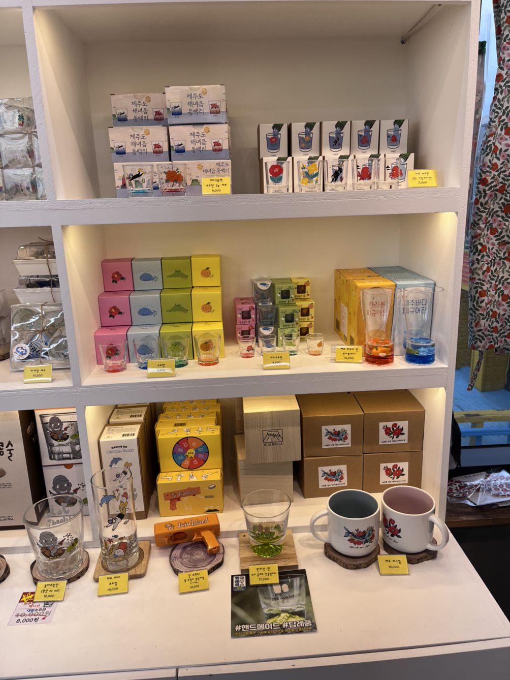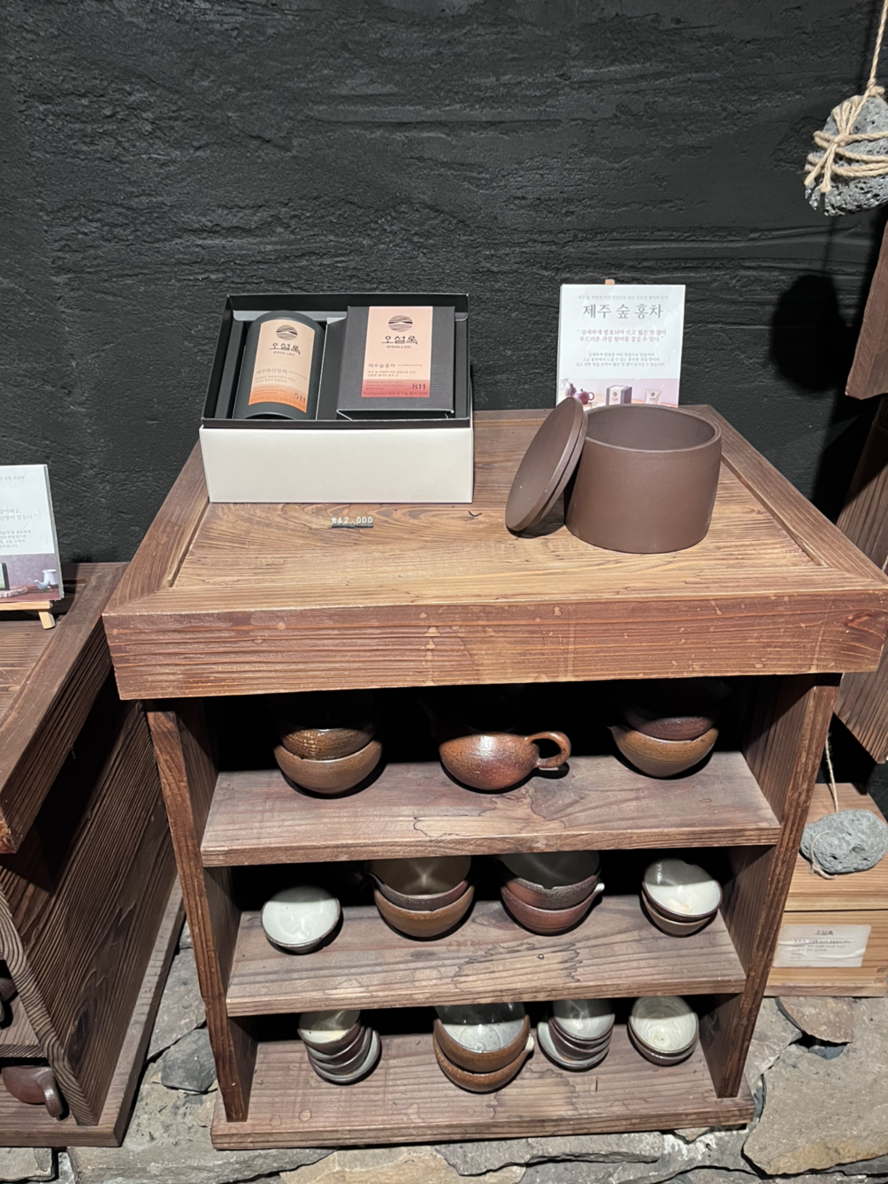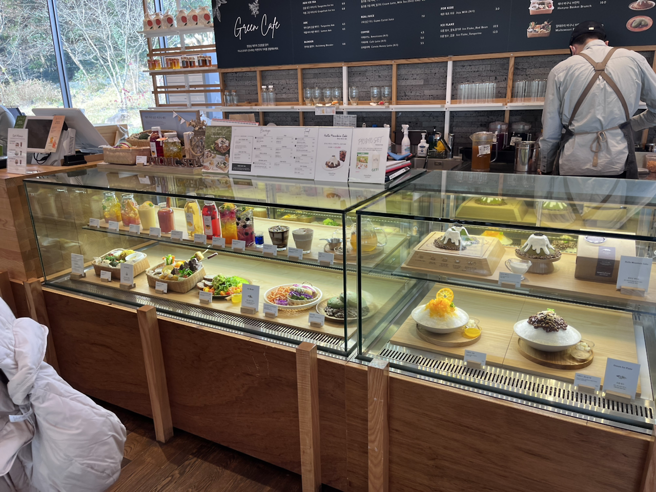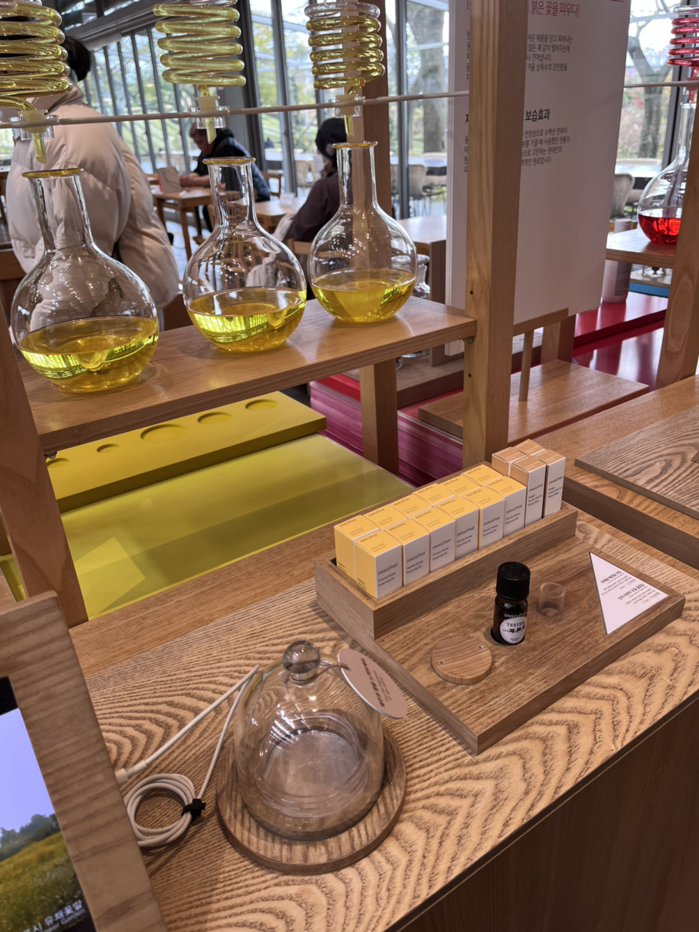 카페 옆의 판매대에선 다양한 제주산 재료로 만든 이니스프리 제품을 보기 좋게 전시하여 홍보하고 있다.