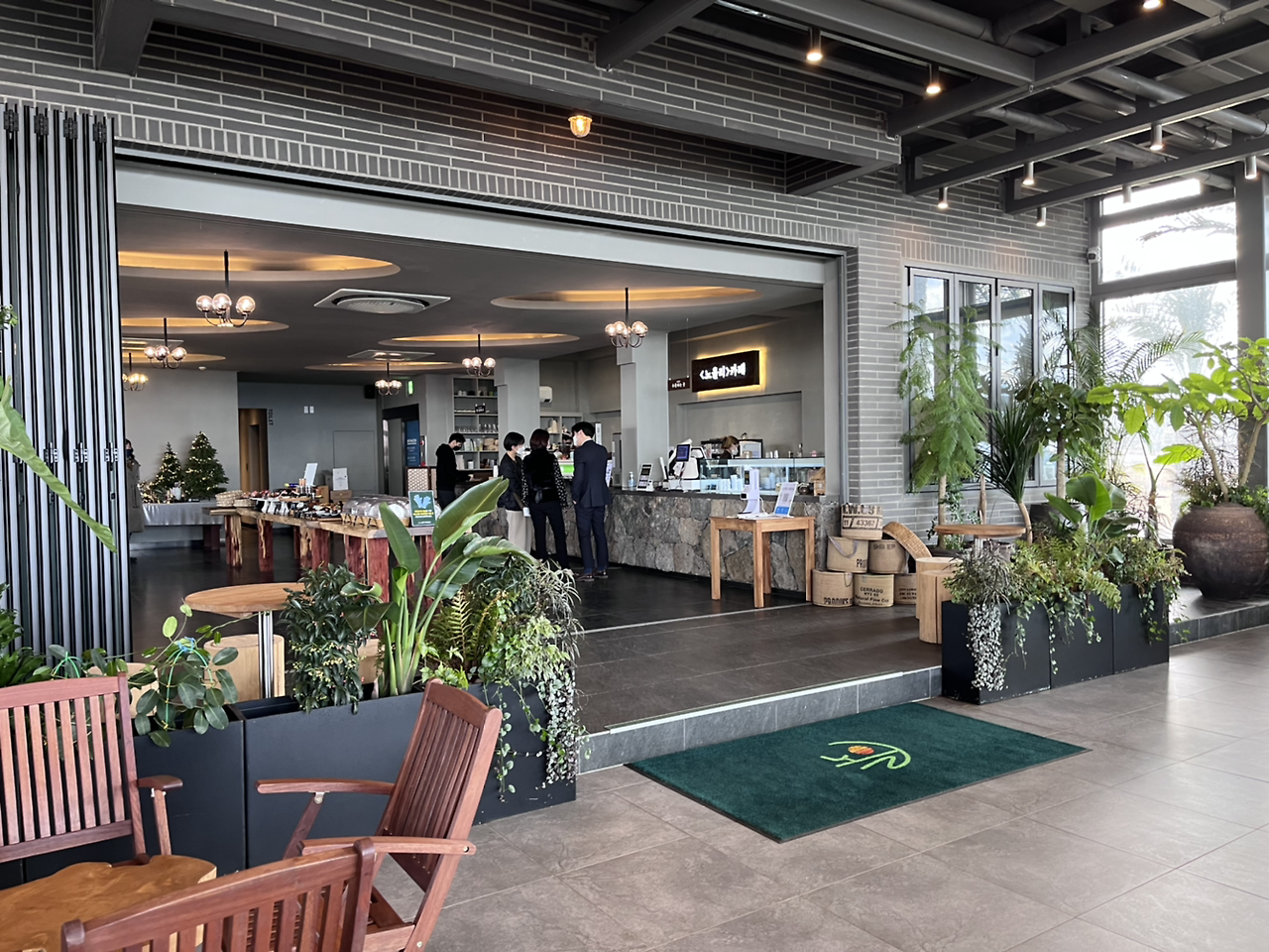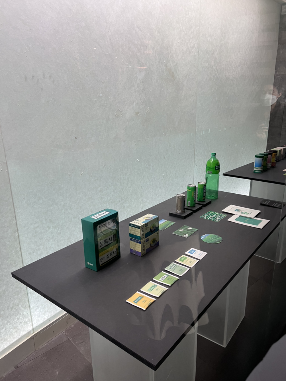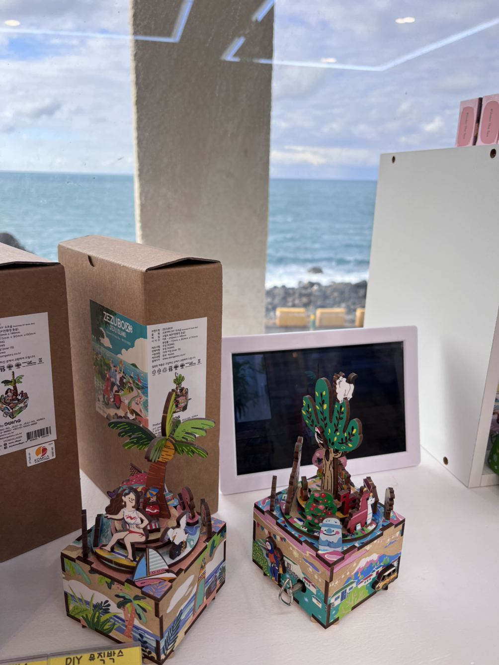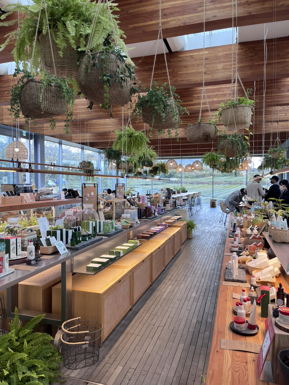 카페 옆의 판매대에선 다양한 제주산 재료로 만든 이니스프리 제품을 보기 좋게 전시하여 홍보하고 있다.