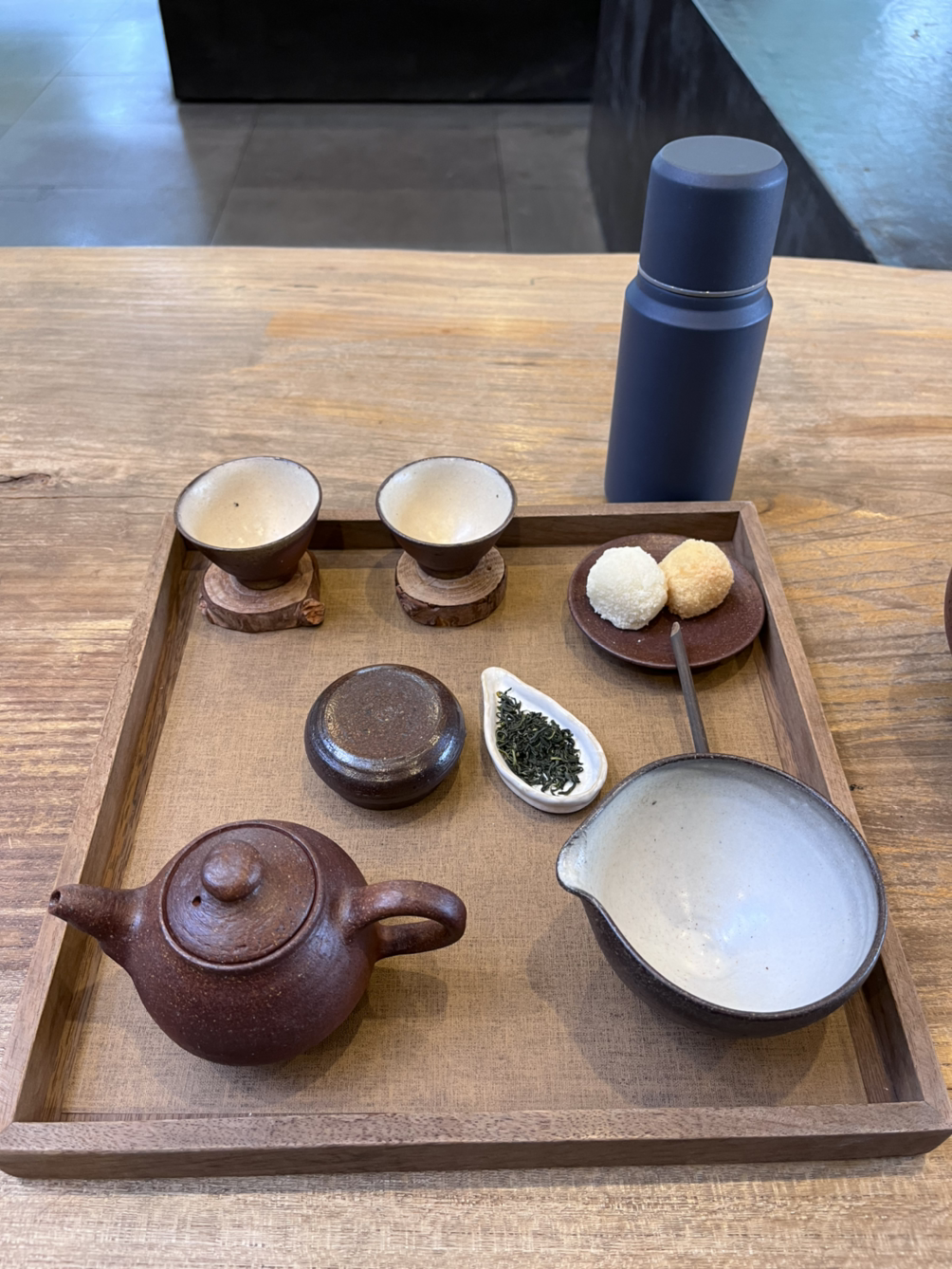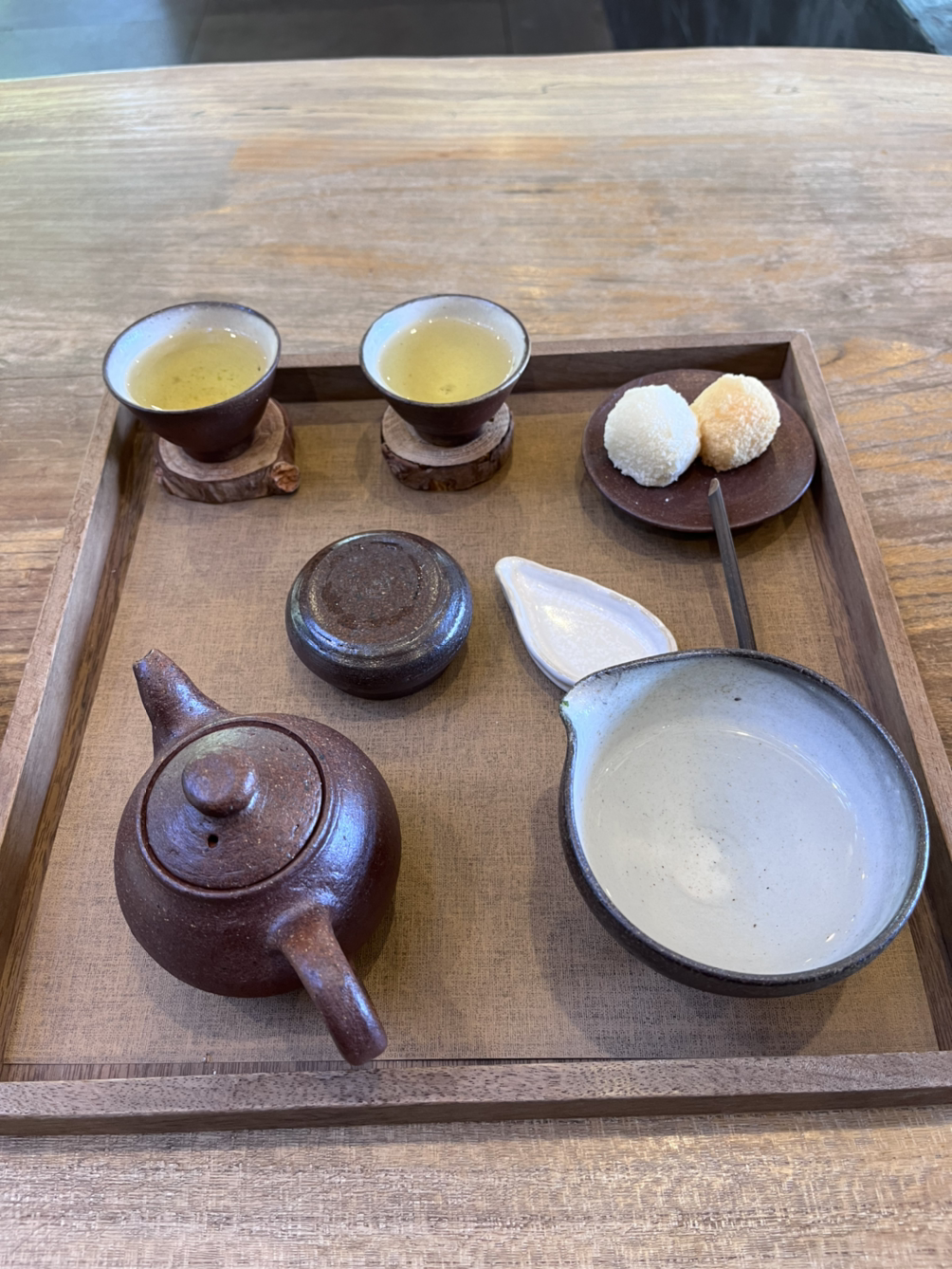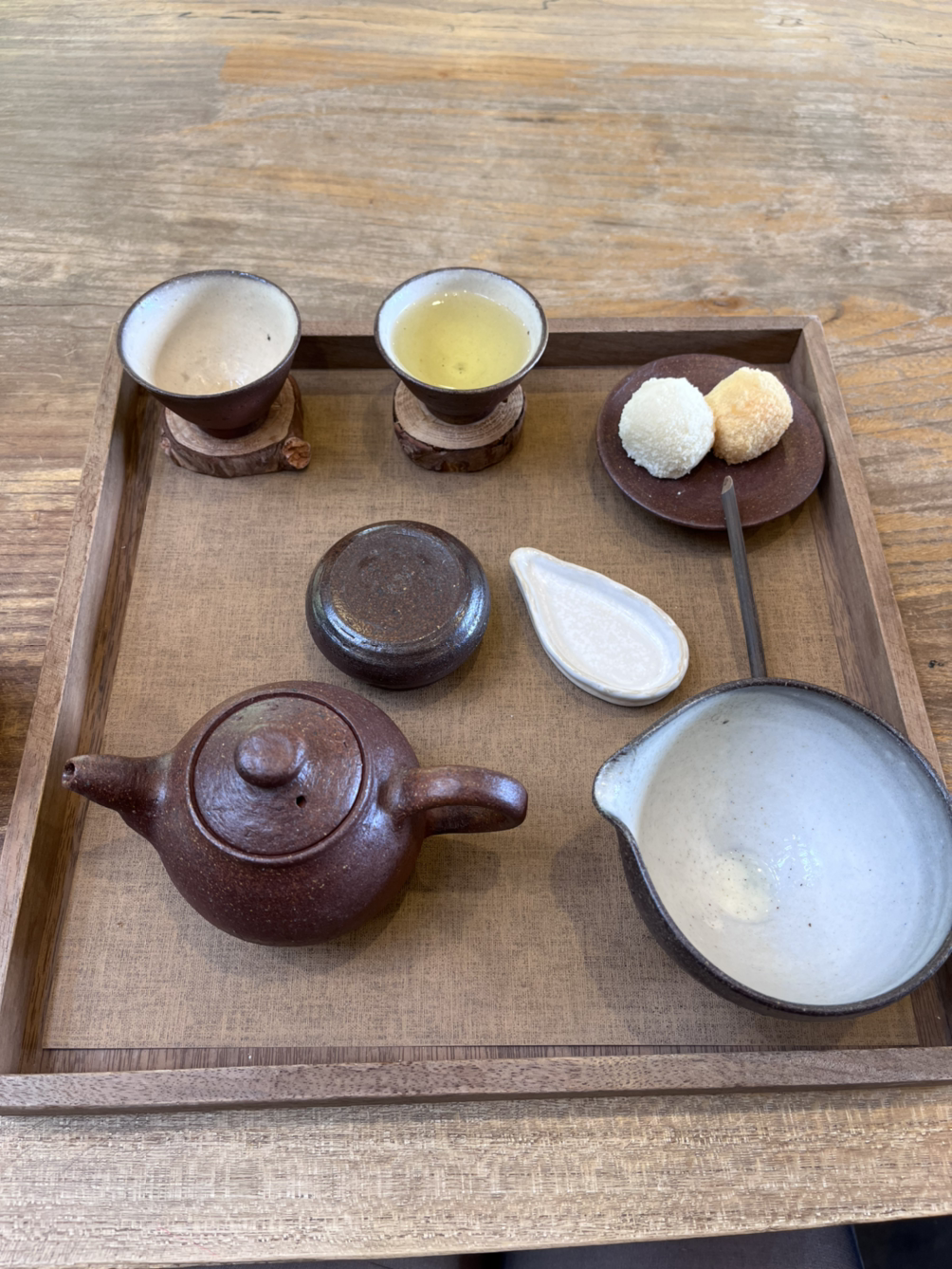 다도하는 방법을 배웠다. 차분하게 차를 마시고 맛있는 크림 경단도 순삭.