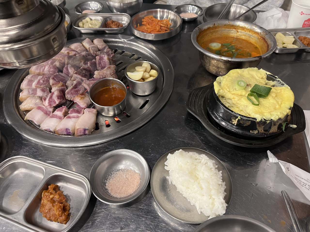 돼지고기 집에 갔다. 추천받은 “돈블랙”이 만석이라 근방의 “문치비”로 이동.