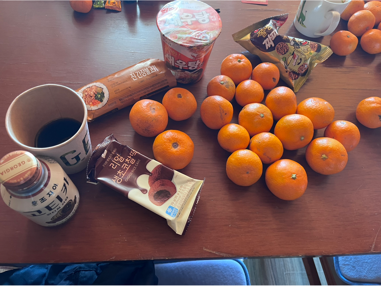 엄마께서 귤이 작을까봐 걱정하셨는데 맛있다는 말씀에 힘이 나서 오늘을 다시 시작하려고 했다. 일어나니 배가 굉장히 고팠다.
