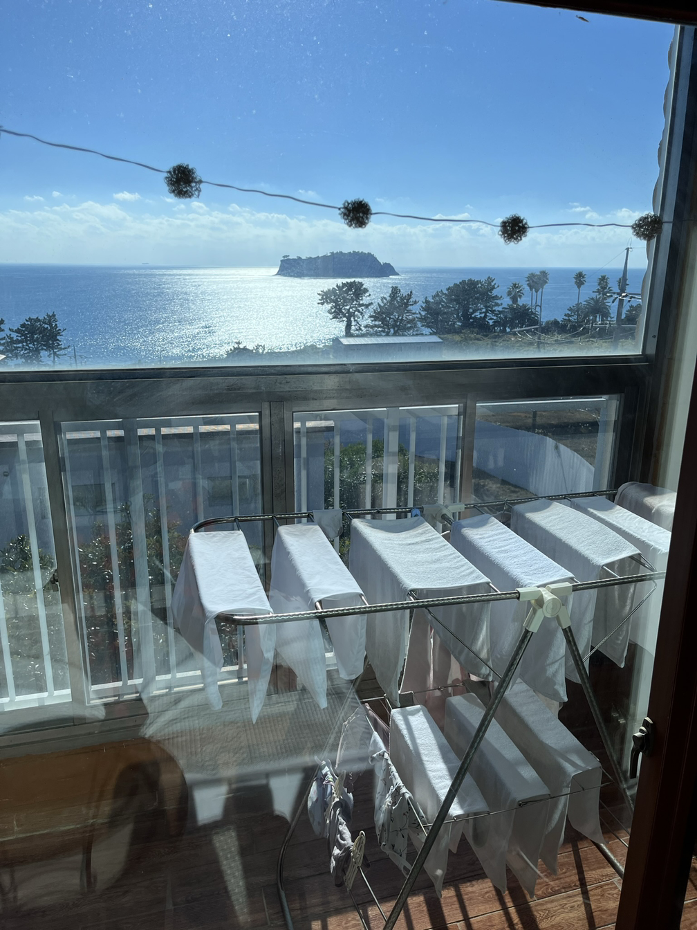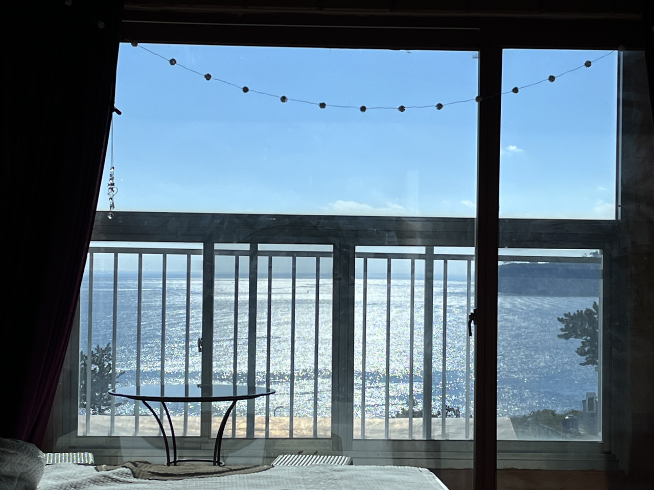 내일도 휴식이 주목적이라 신나고 행복하게 느껴진다! 바다 뷰도 최고야! 오늘은 햇빛이 좋아서 집에서 카톡하며 본 바깥 풍경도 너무 이뻤거든.
