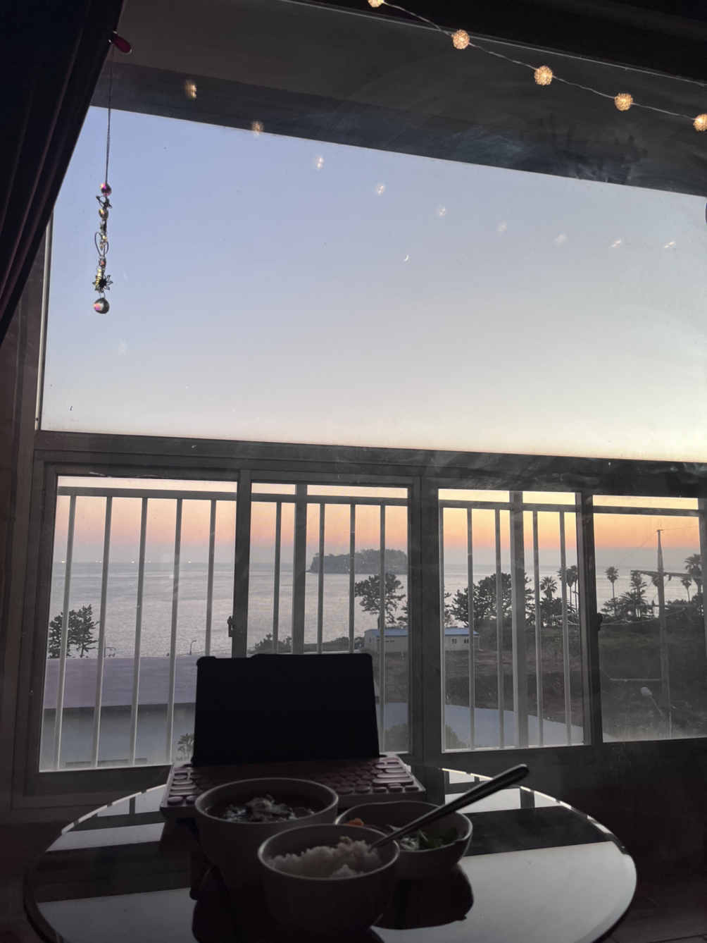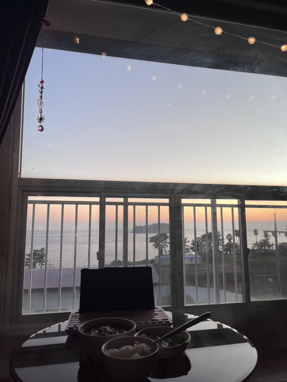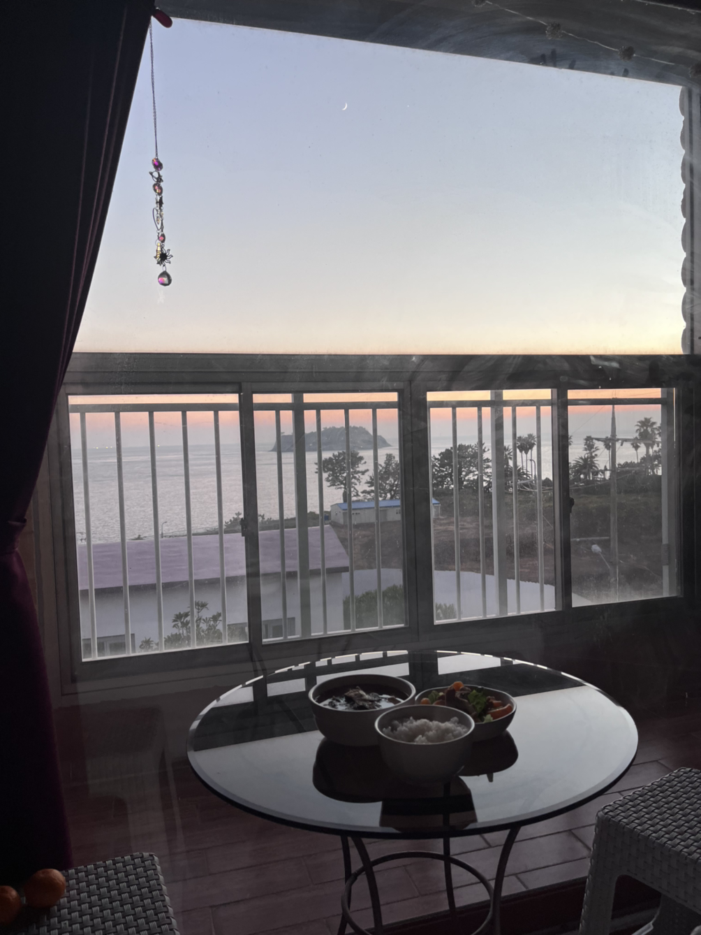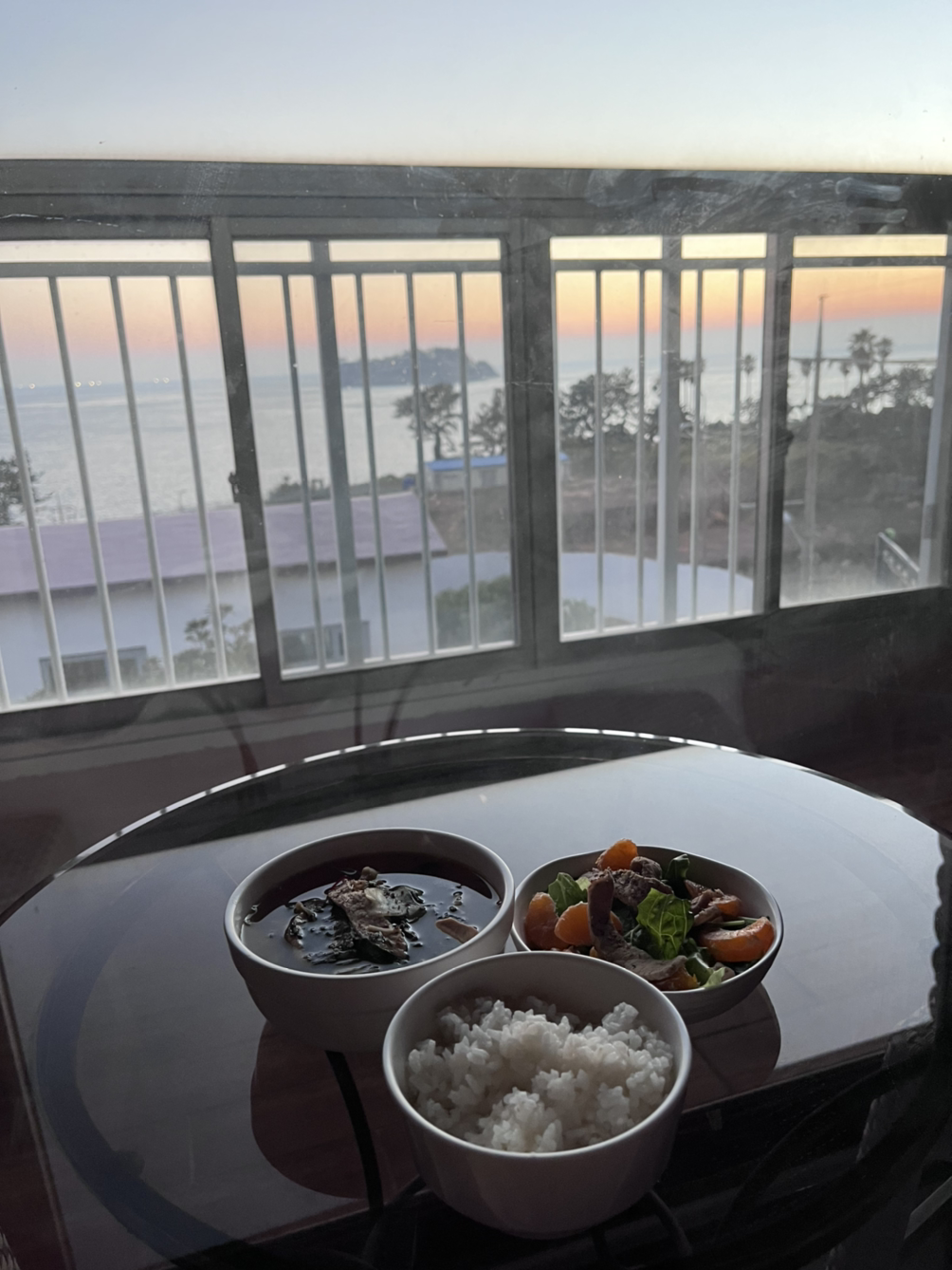 베란다에 있던 테이블을 아예 침대 옆으로 옮겼기 때문에 거기서 아름다운 석양을 바라보며 밥을 먹고 친구들에게 자랑도 했다.