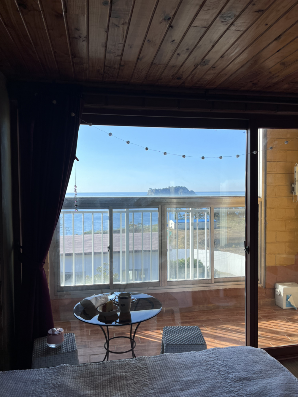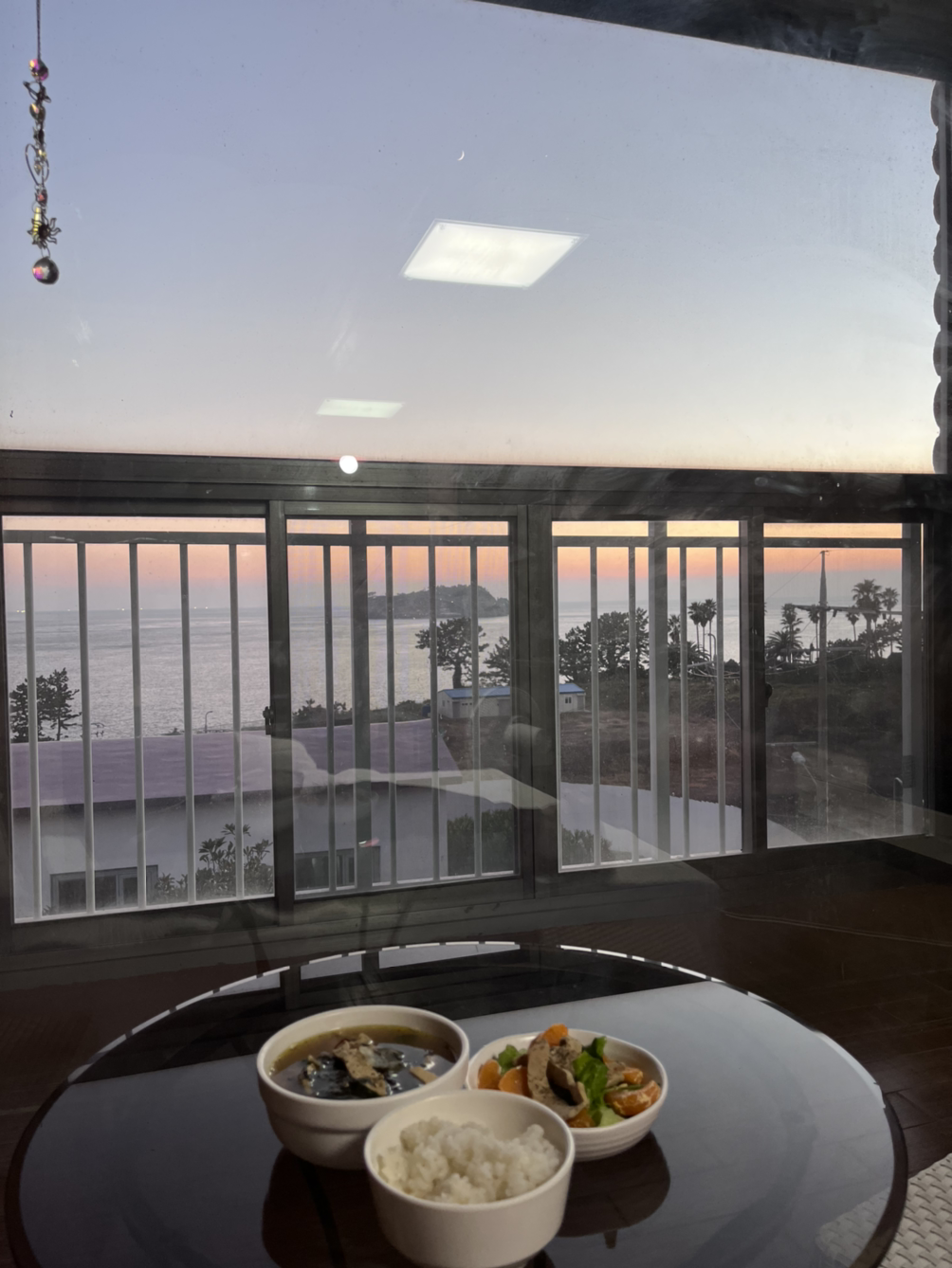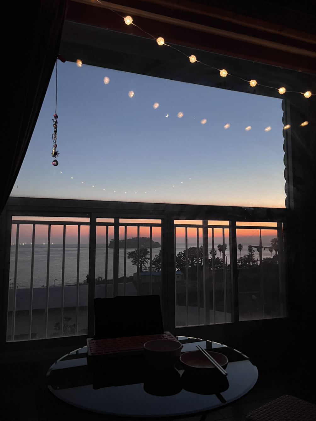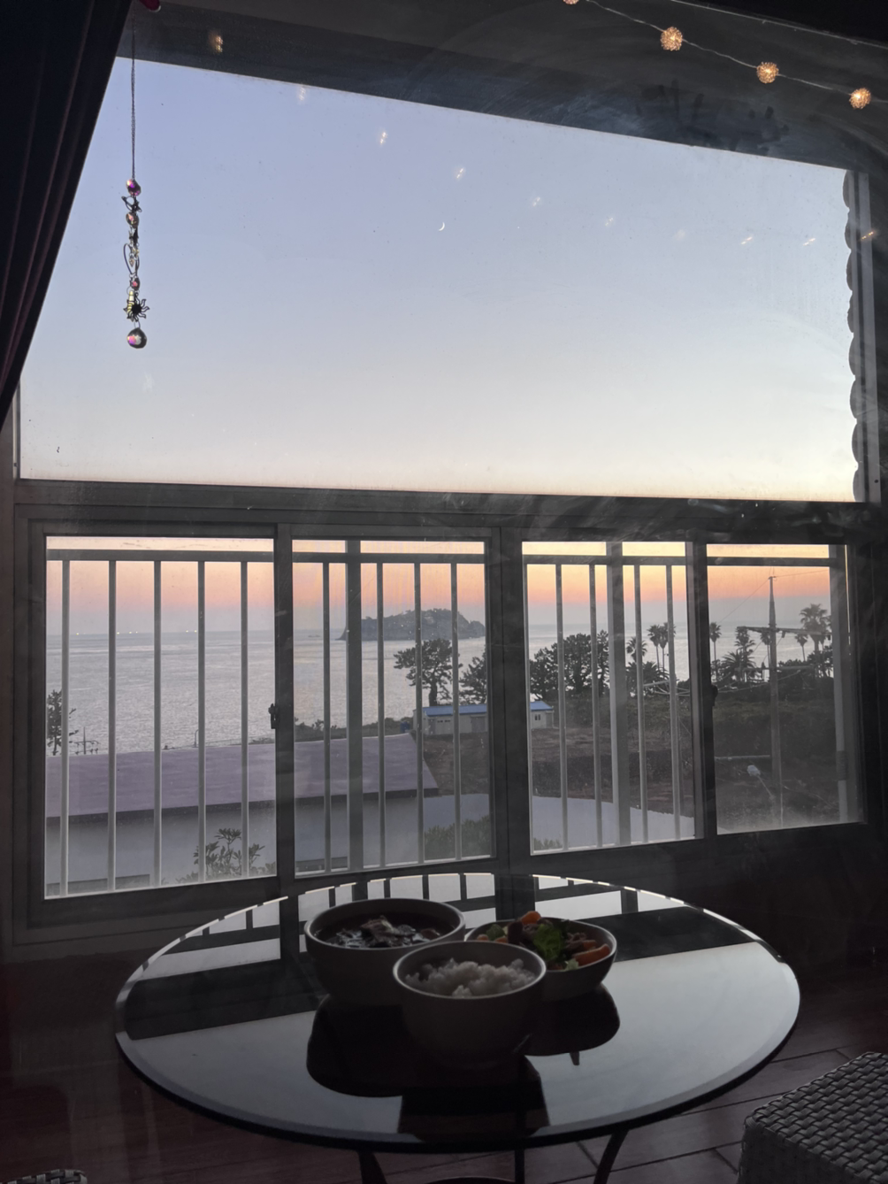 베란다에 있던 테이블을 아예 침대 옆으로 옮겼기 때문에 거기서 아름다운 석양을 바라보며 밥을 먹고 친구들에게 자랑도 했다.