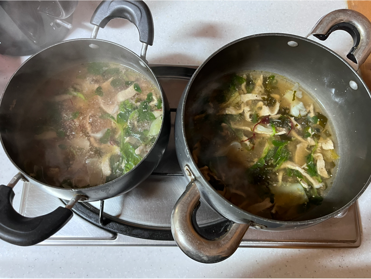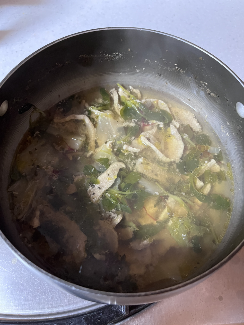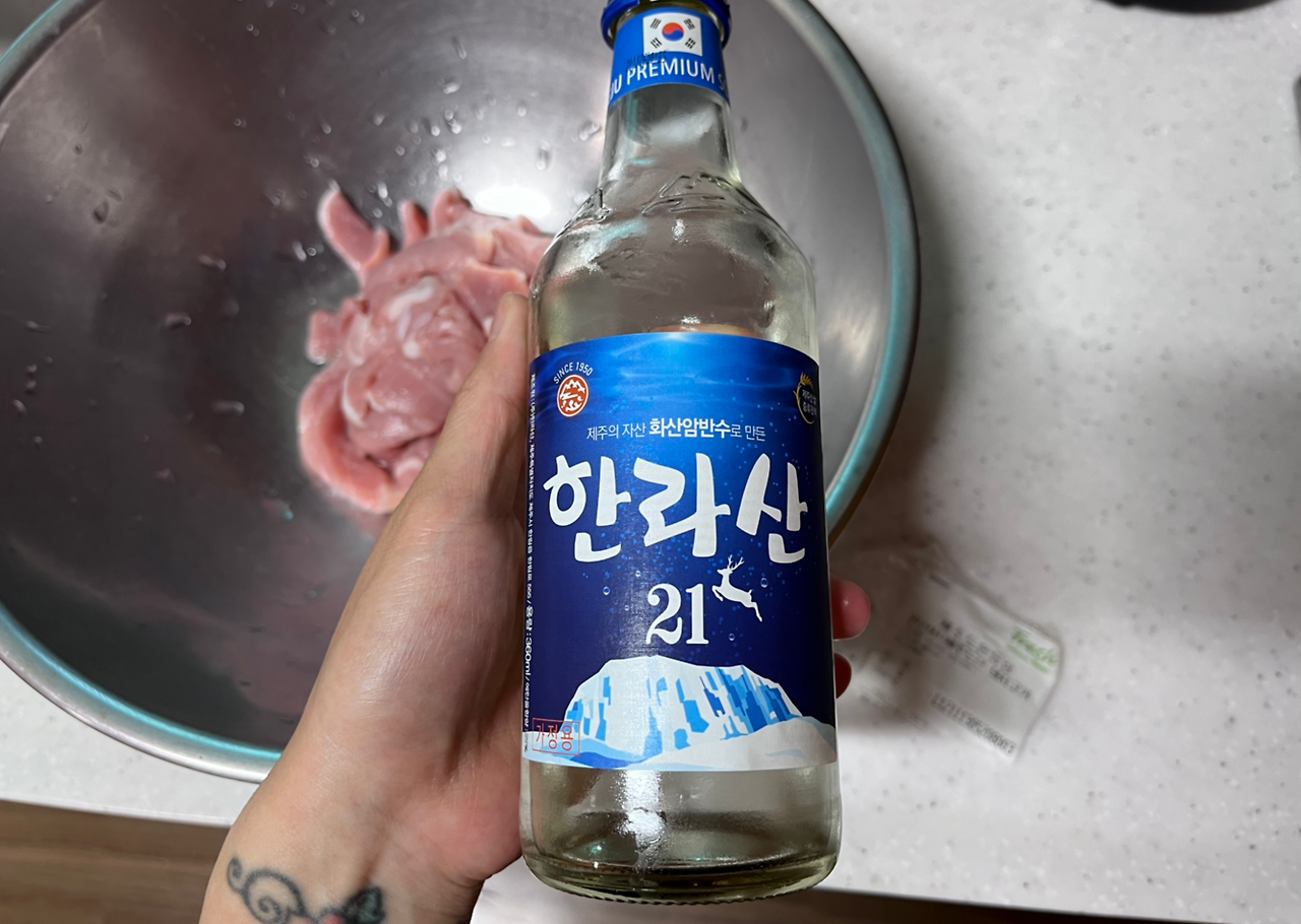아무 대책 없이 고기를 한라산 소주와 향신료에 재워뒀기 때문에 좀 망했다는 생각이 들었지만, 위가 쓰려 따뜻한 국물을 먹고 싶단 생각이 들어 재워둔 물에서 고기를 건져 새로운 물에 담고 열심히 끓였다.
