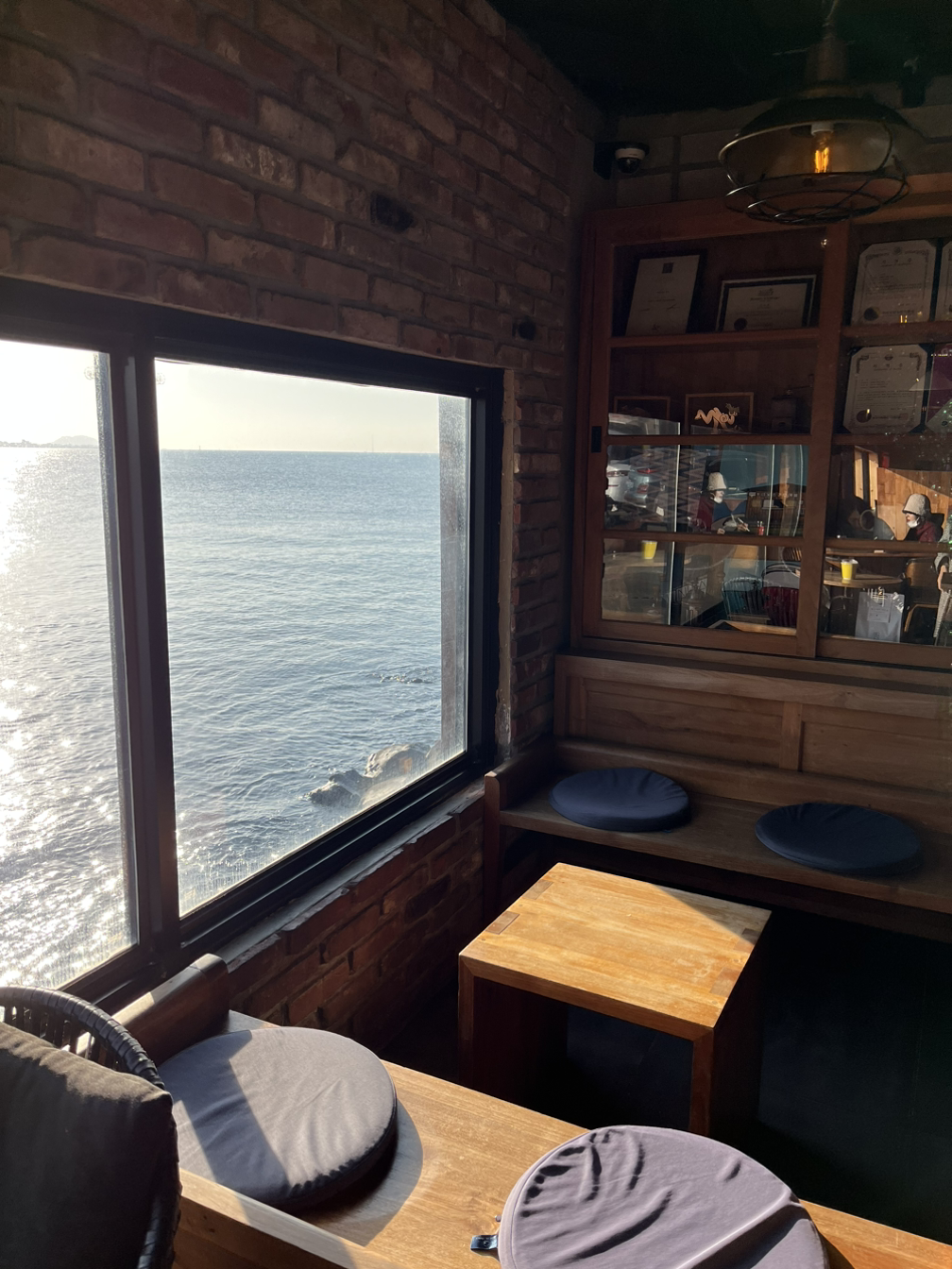바다 뷰를 보며 커피를 마시다, E가 상담 봐달래서 보다가 염장을 당하고. E도 마침 반차라 그 친구가 나를 위해 뽑아준 카드들도 좀 보다 카드가 바람에 날아가려고 해서 봄날에서 마저 좀 있다가 올까 하고 있어.