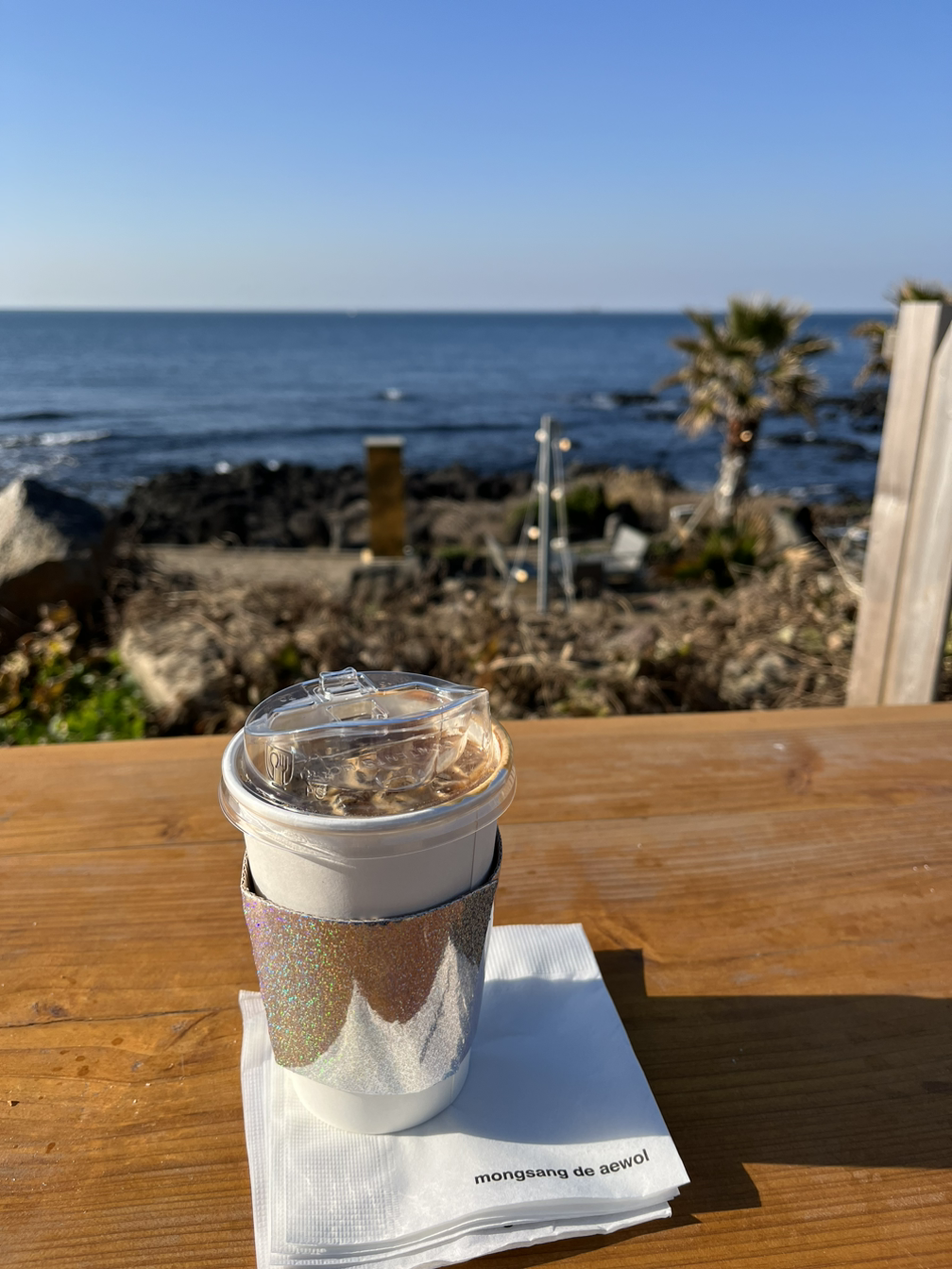 캐럴이 흘러나오는 애월의 몽상드 애월이다. 지드래곤이 이전에 운영했었다고 하여 와 봤어. 지금은 여기 팔고 제주 신화월드 안에 있는 카페를 한댔지만.