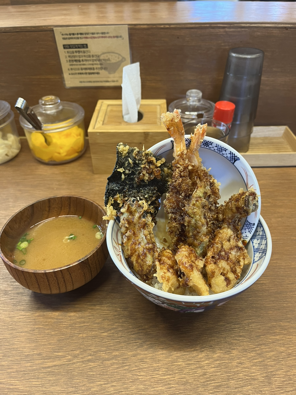실패했던 텐동 집에서 오늘은 드디어 텐동을 먹고 새로운 지역 카페를 향해 갔다.
