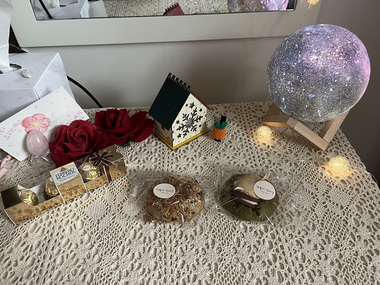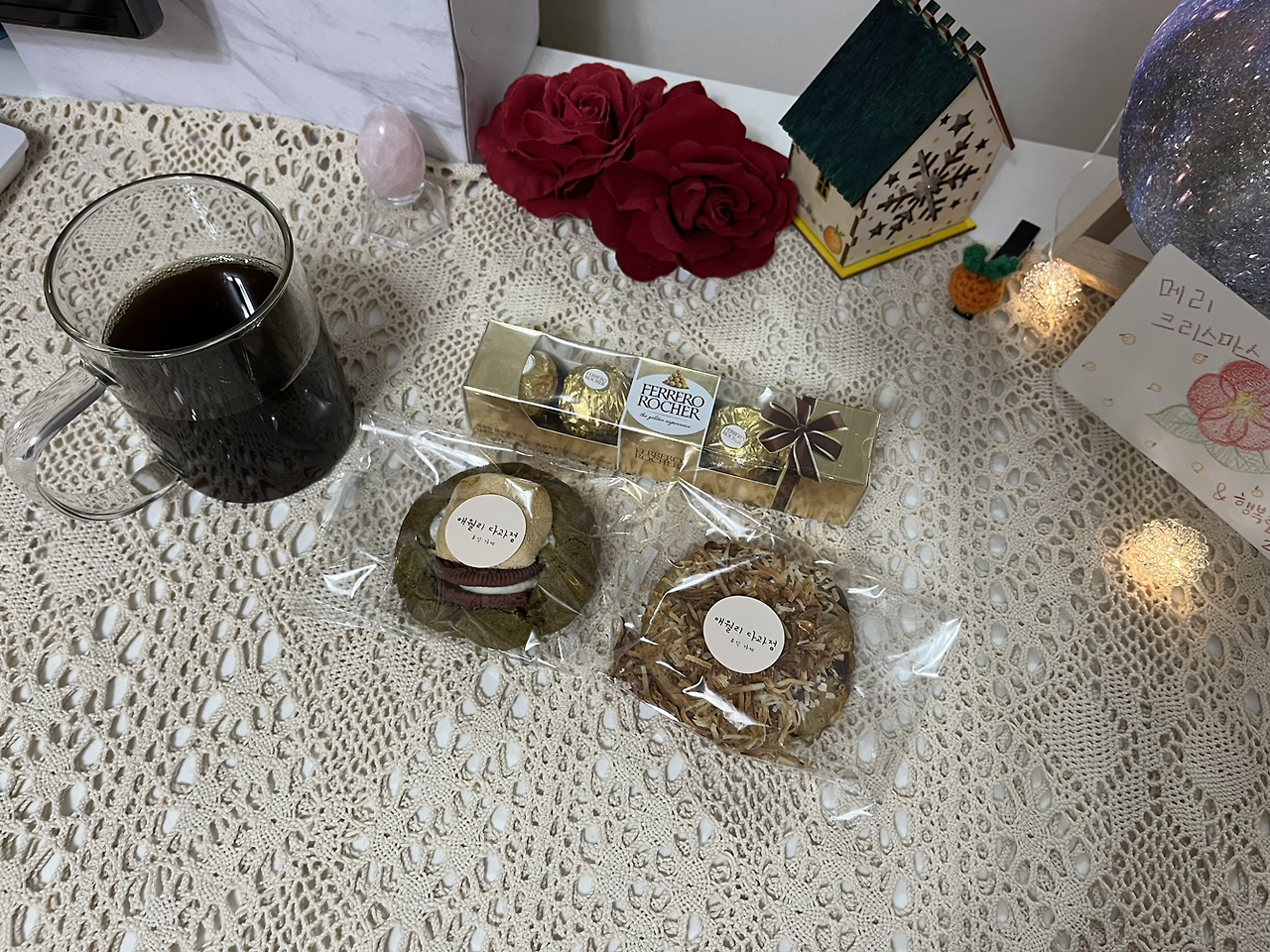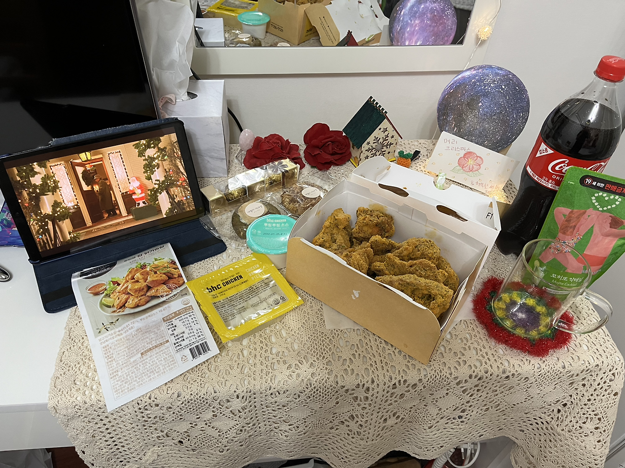 어젯밤엔 크리스마스 파티를 나름 거하게 하고 내담자님 덕분에 치킨도 맛있게 먹고 비상식량 닭가슴살도 잘 쟁여두는 좋은 밤이었다. 조명도 이것저것 밝혀서 알찼어.