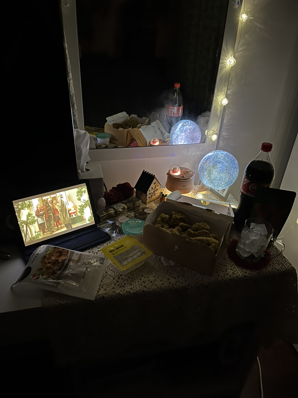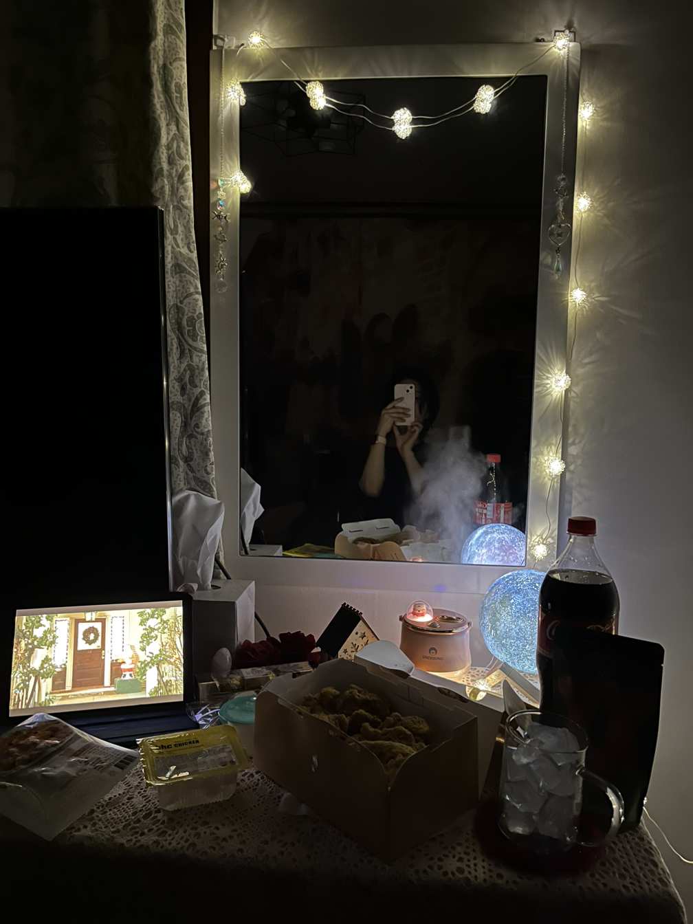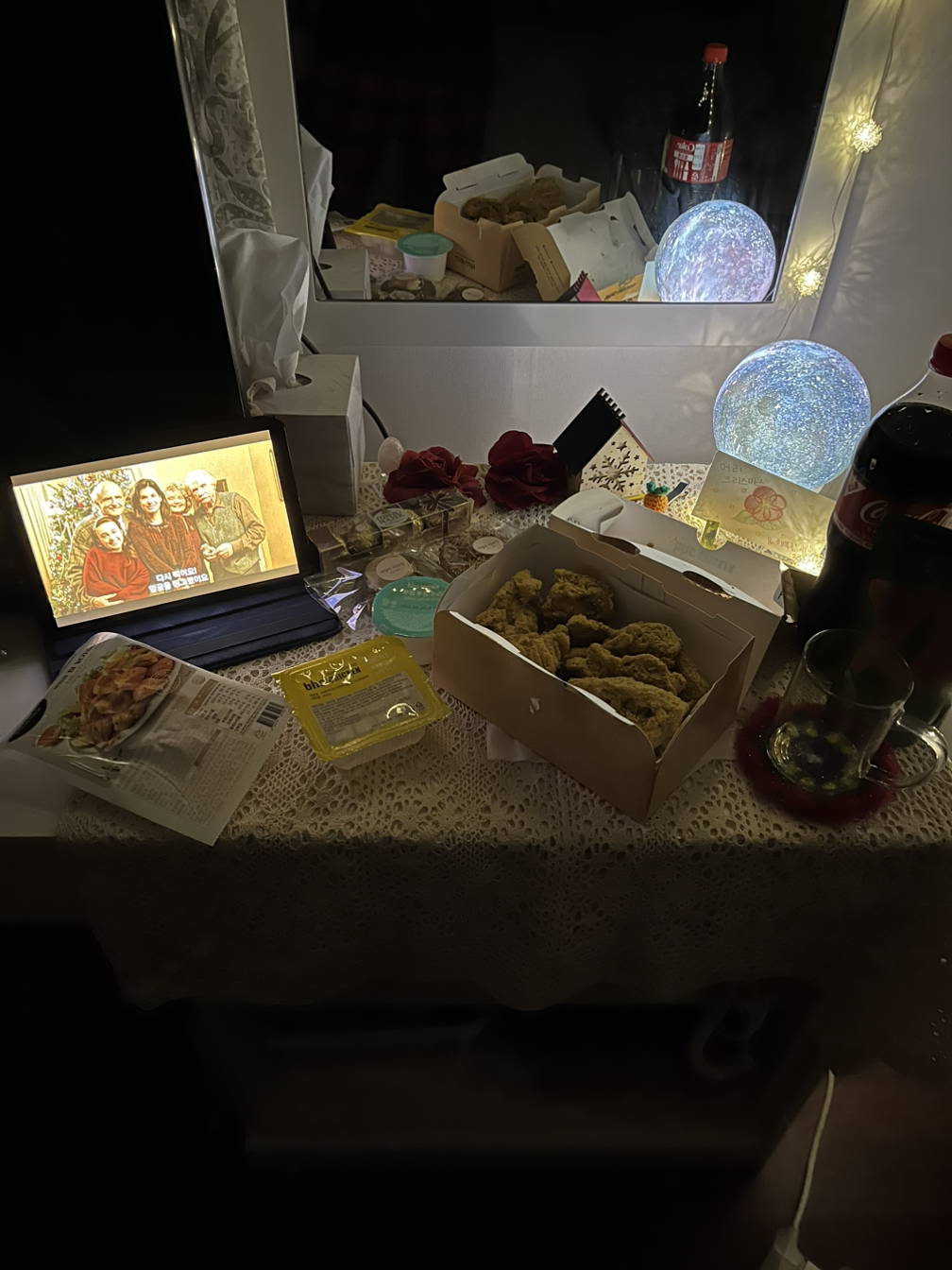 어젯밤엔 크리스마스 파티를 나름 거하게 하고 내담자님 덕분에 치킨도 맛있게 먹고 비상식량 닭가슴살도 잘 쟁여두는 좋은 밤이었다. 조명도 이것저것 밝혀서 알찼어.