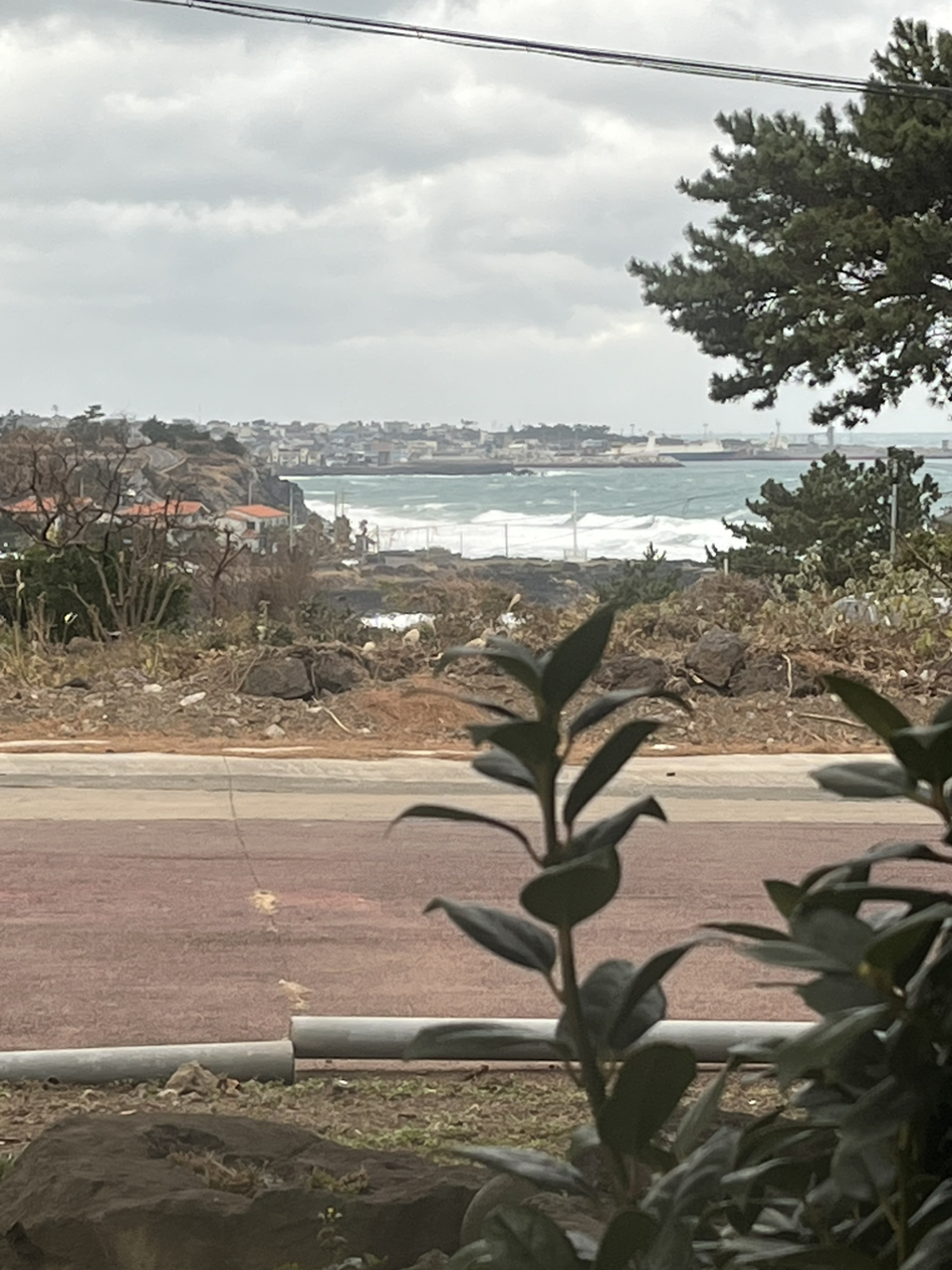 원래 조용하던 파도도 오늘따라 굉장히 거세게 쳐서 하늘색 부분이 많은 바다가 보이는 풍경이었다.