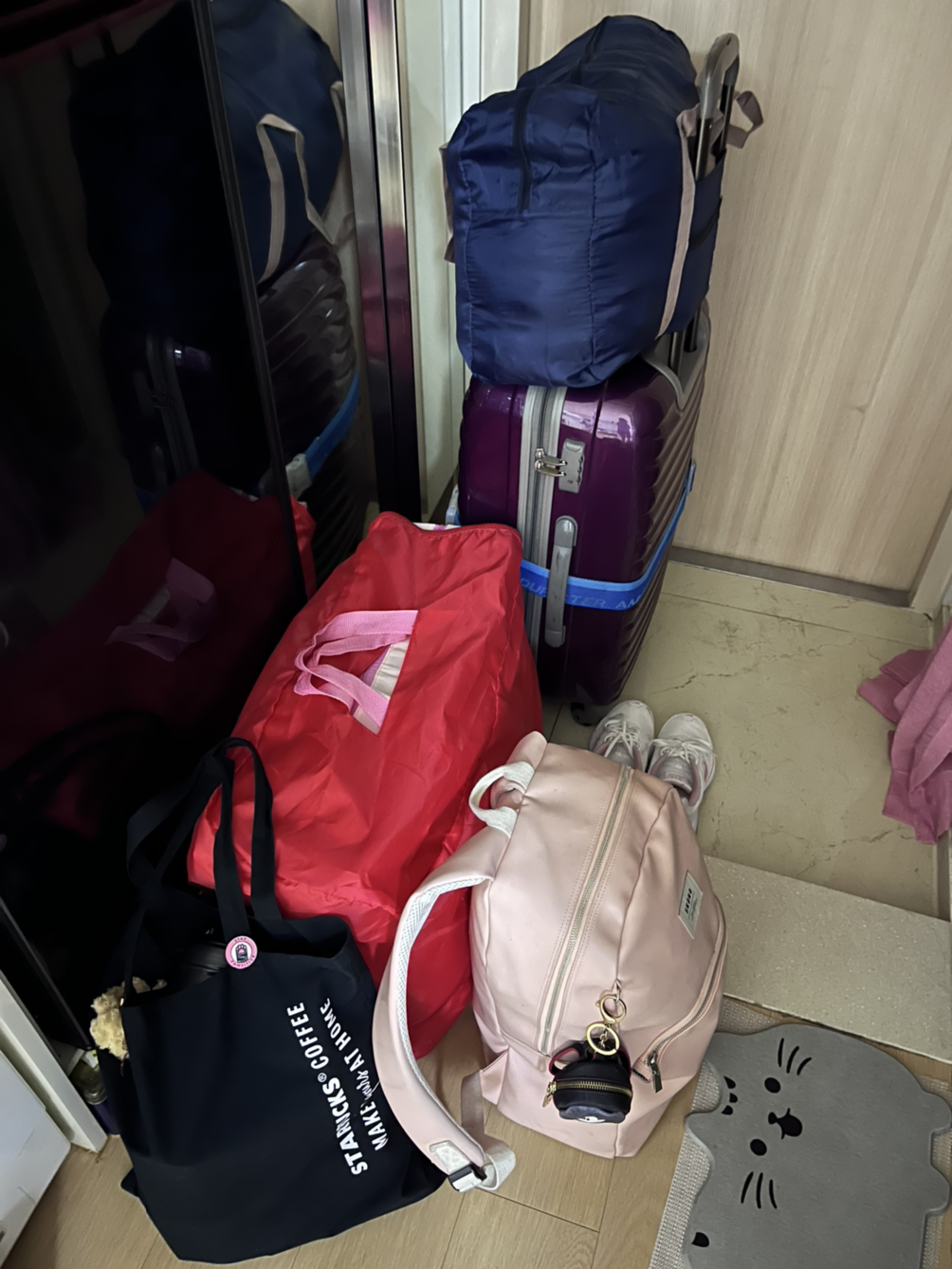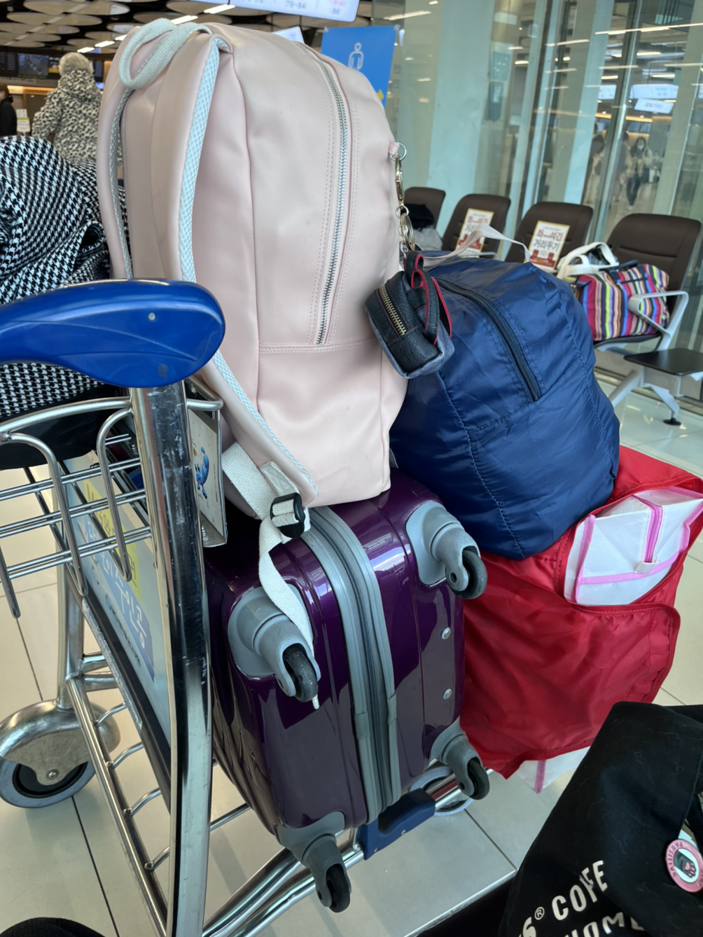 어쨌든 짐을 미리 못 싼 나는…. 유럽 여행 때의 실수를 반복하며 이번엔 겨울옷이라 빅 캐리어 2개+ 백팩 2개+ 에코백 1개 분량의 짐을 만들어버렸다.