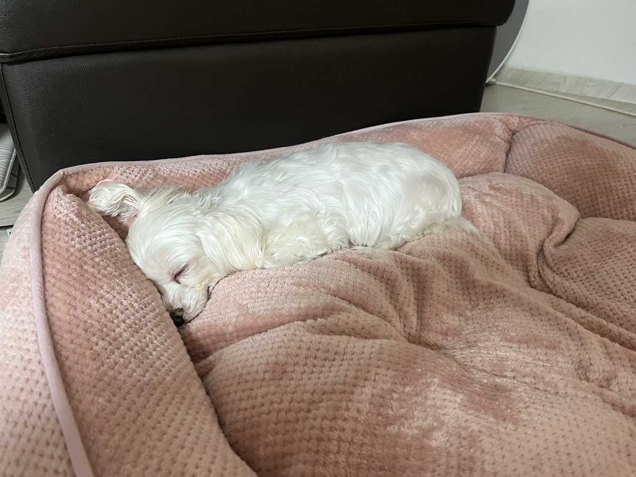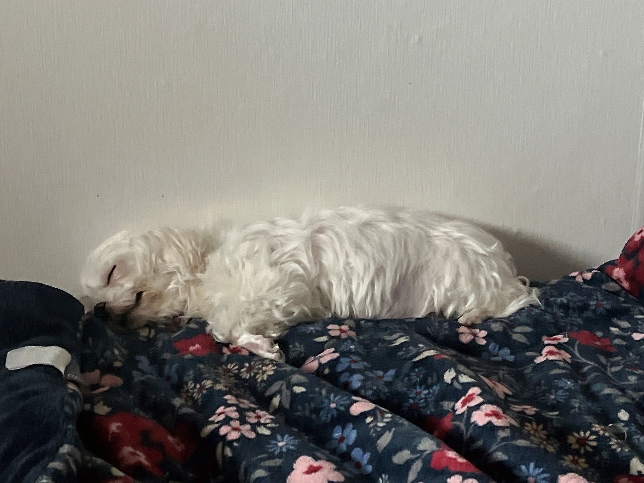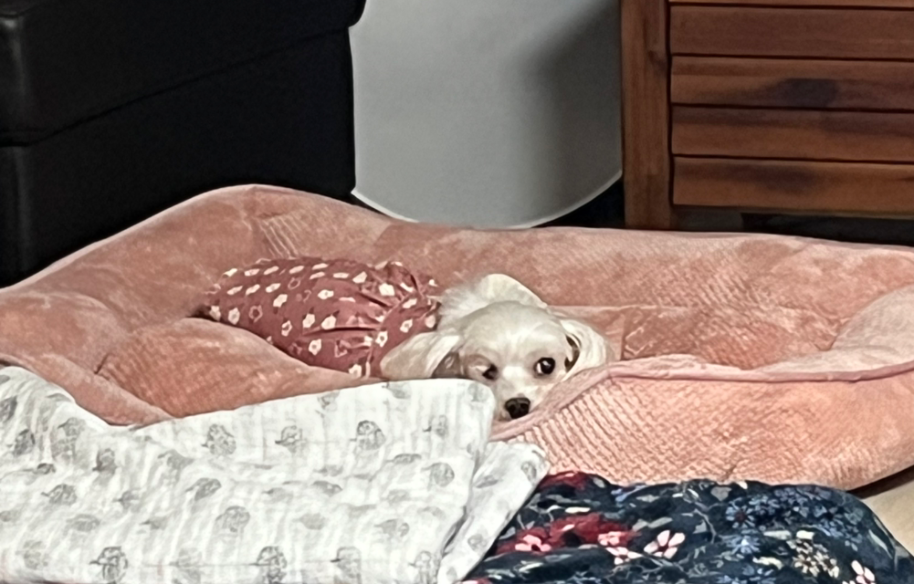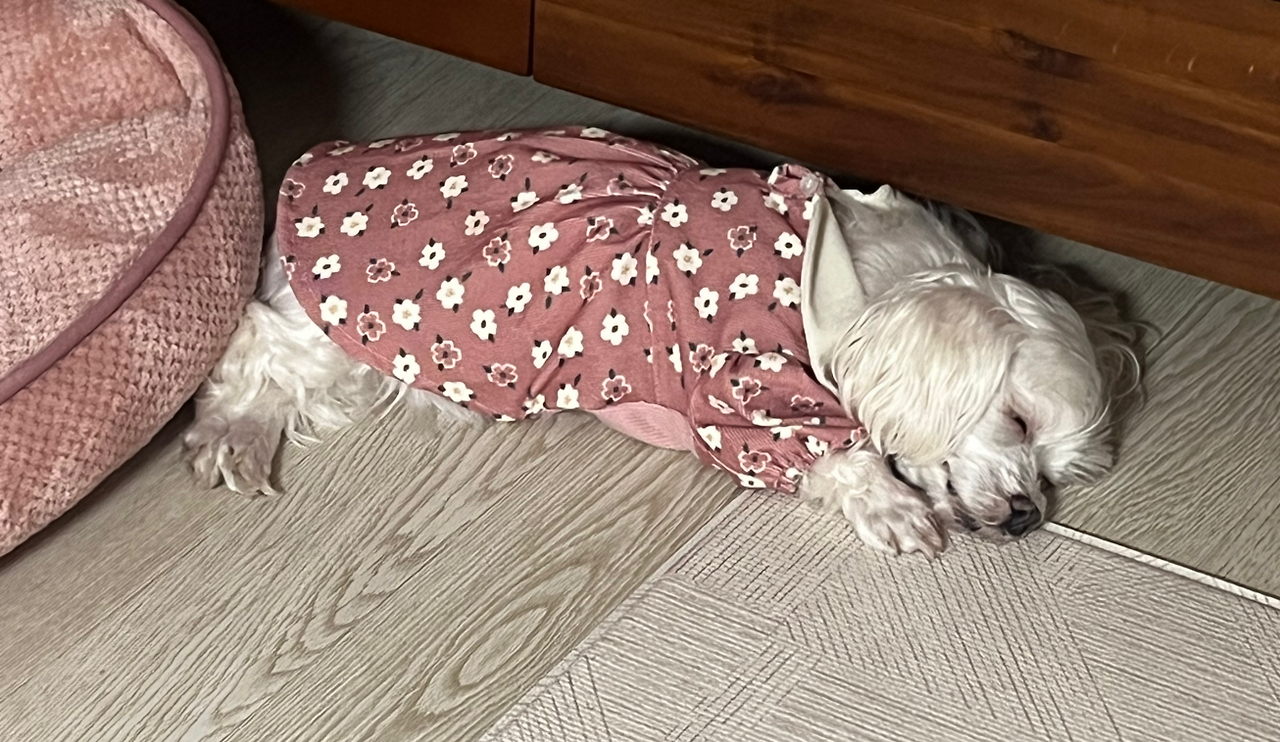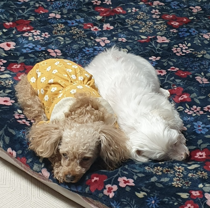 유피는 약과 음식을 힘겹게 먹고 힘없이 17년을 함께 한 갈색 푸들 옆에 조용히 누워있었다고 사진을 보내줬다.