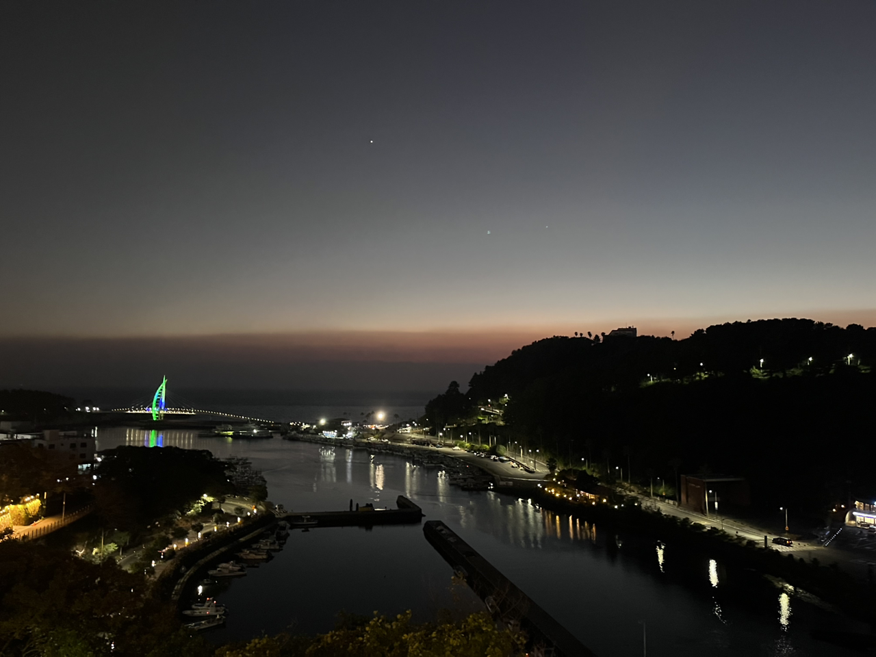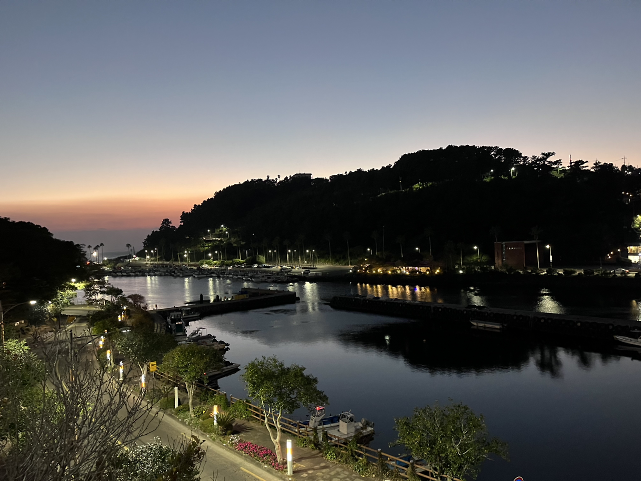 덕분에 오전 7시 반에 또 자동으로 눈을 떴을 때 가장 먼저 보인 건 벌써 몇 번을 보는지 모르겠는 범ㅋ섬ㅋ과 어스름한 바다였다! 눈을 뜰 때마다 신기하고 놀라운 광경이다.
