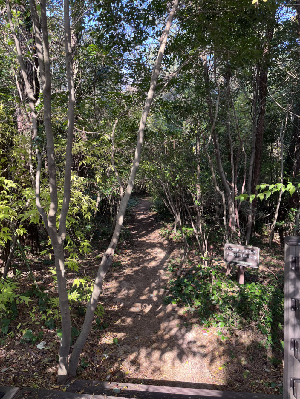 가는 길에 만난 아주머니께서 전날 1000원 내고 예약하면 숲 해설가님이 3시간가량 같이 숲을 걸으며 설명을 해준다는데. 당일 예약은 한 시간을 기다려야 해서, 숲에 그 정도의 애정이 없고 숲을 조금 싫어하기도 하기 때문에 관두기로 했다. 생각해둔 다른 일정도 많은 데다 이미 숲 비슷한 입구를 걸어온 것에 오늘치 숲 할당량 만족이 되었기 때문이다.