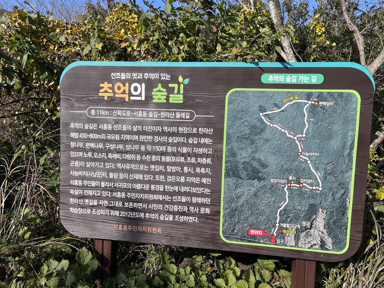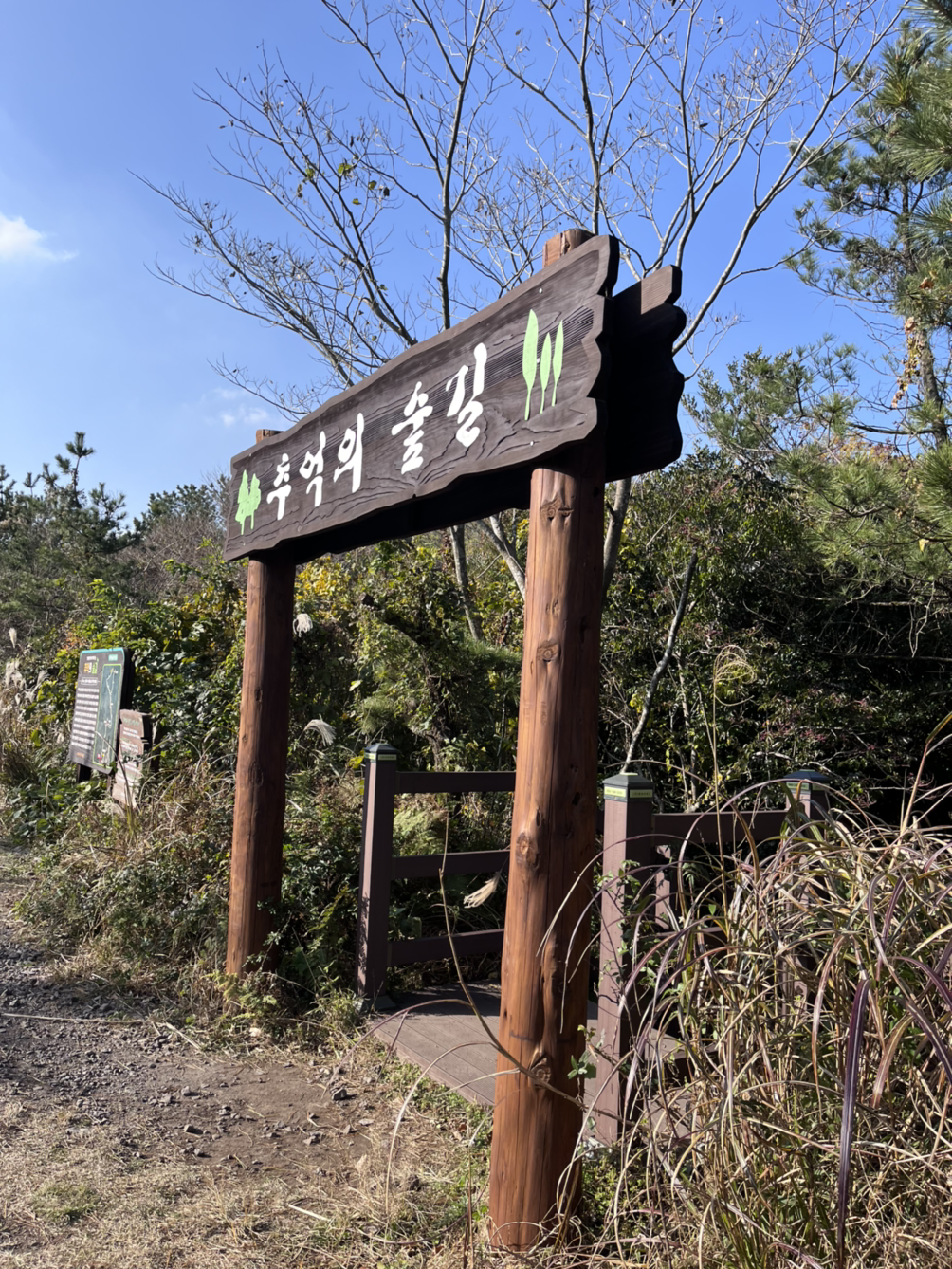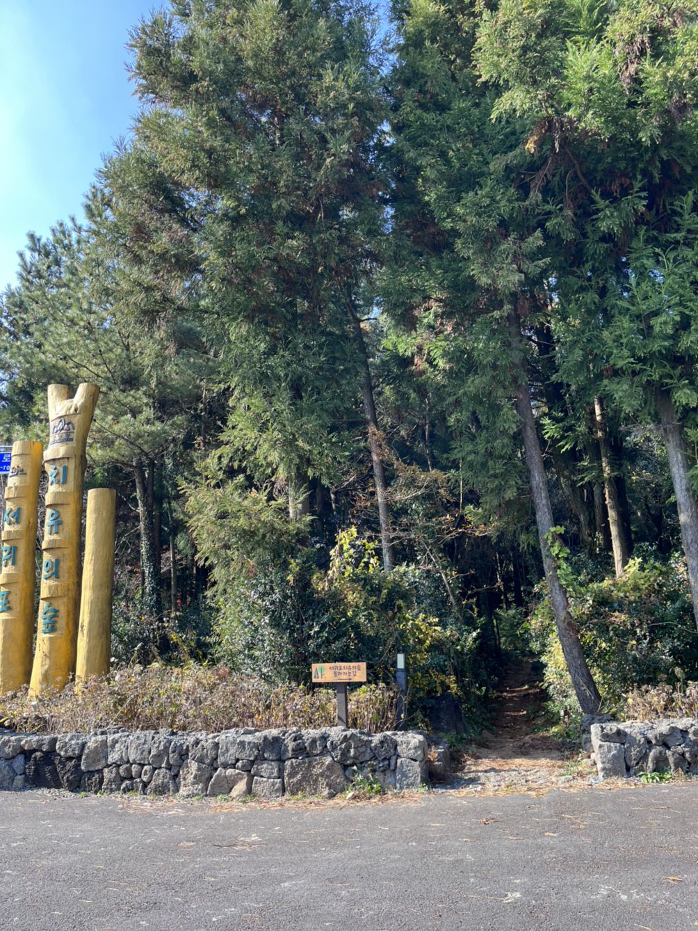 한라산 둘레길이라도 가려고 했는데 버스도 없고 걸어서 무슨 2시간 반 거리라 좀 걸어가다가 포기하고 다시 반대로 방향을 돌려 중간에 있던 솔 전망대로 걸어갔다. 다시 치유의 숲 입구를 지나 조금 걷다 보니 추억의 길이라는 곳도 있어서 살짝 들어가서 포기브 오일을 바르고 향을 음미를 하며 숲 속 아로마 세러피를 나름 한 후 금방 나왔다.