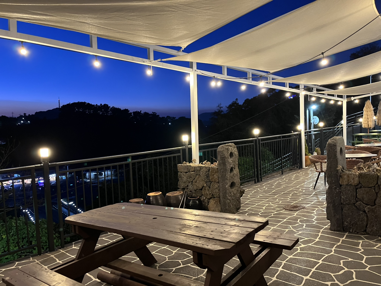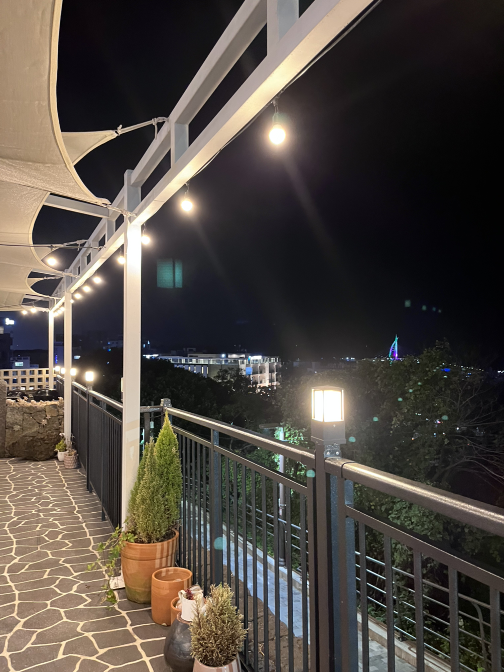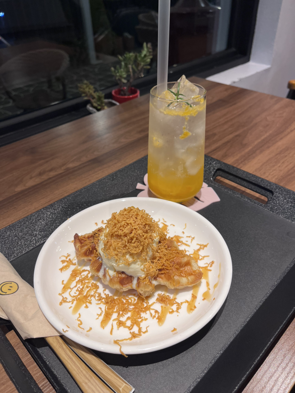 멀리로 불빛이 켜진 다리도 보이고 전구들도 이쁘고. 브라운치즈크로플이 이전에 서울에서 소개받은 곳보다도 맛있어서 우걱우걱 순식간에 먹고