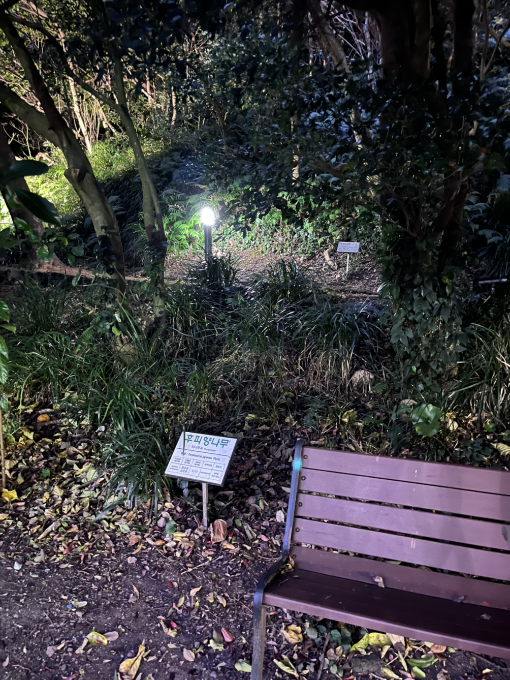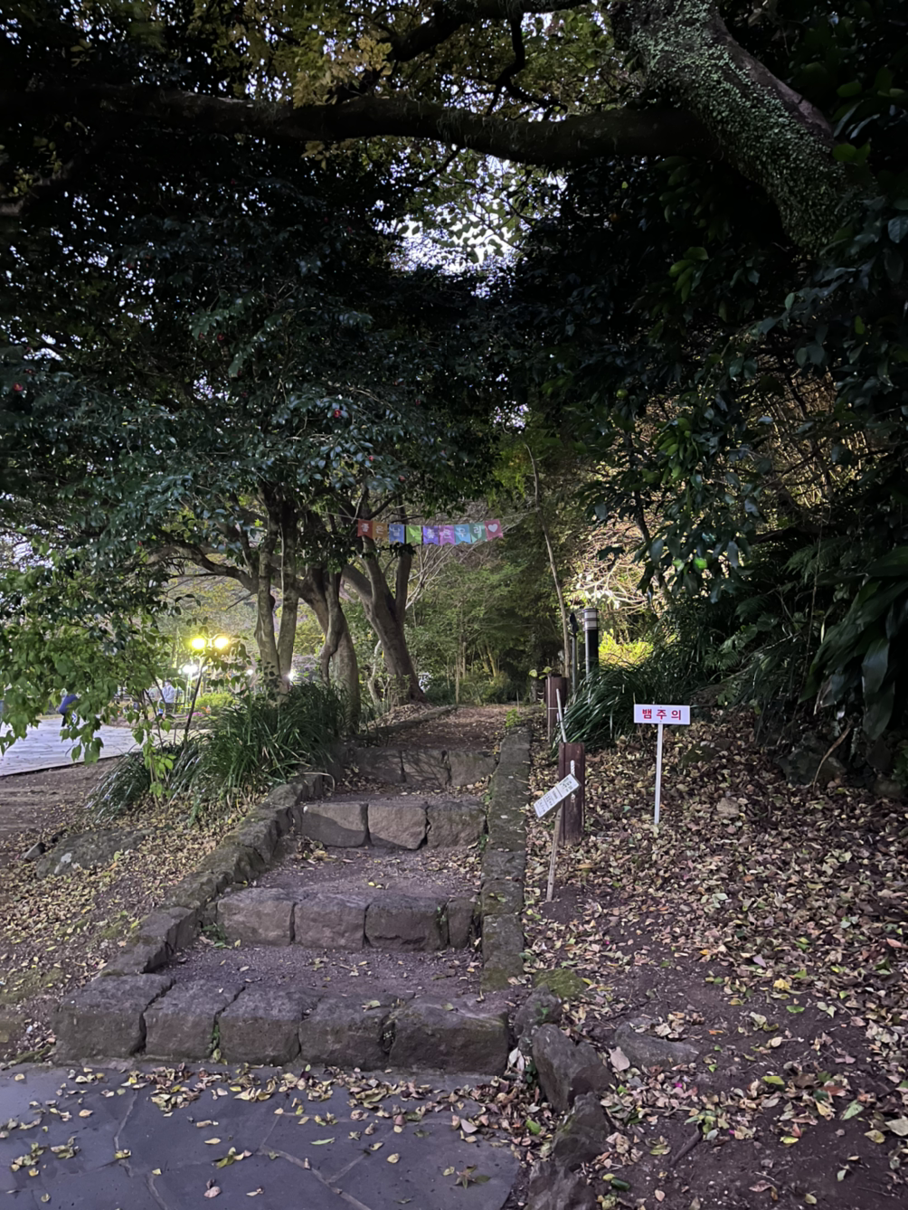 많은 코스를 갔지만 아직 5시 반 즈음이라 생각보단 밝았다. 천지연이 야경명소래서 "오히려 좋아"인 마음도 있었는데 무인 매표소에서 2000원에 매표를 하고 들어가 보니 날도 별로 어둡진 않고 무엇보다 벌레가 무척 많았다. 날파리가 너무 많아서 오래 머물기가 너무 힘들더라! 그래서 사진 좀 찍고 도망치듯 후딱 나왔다.