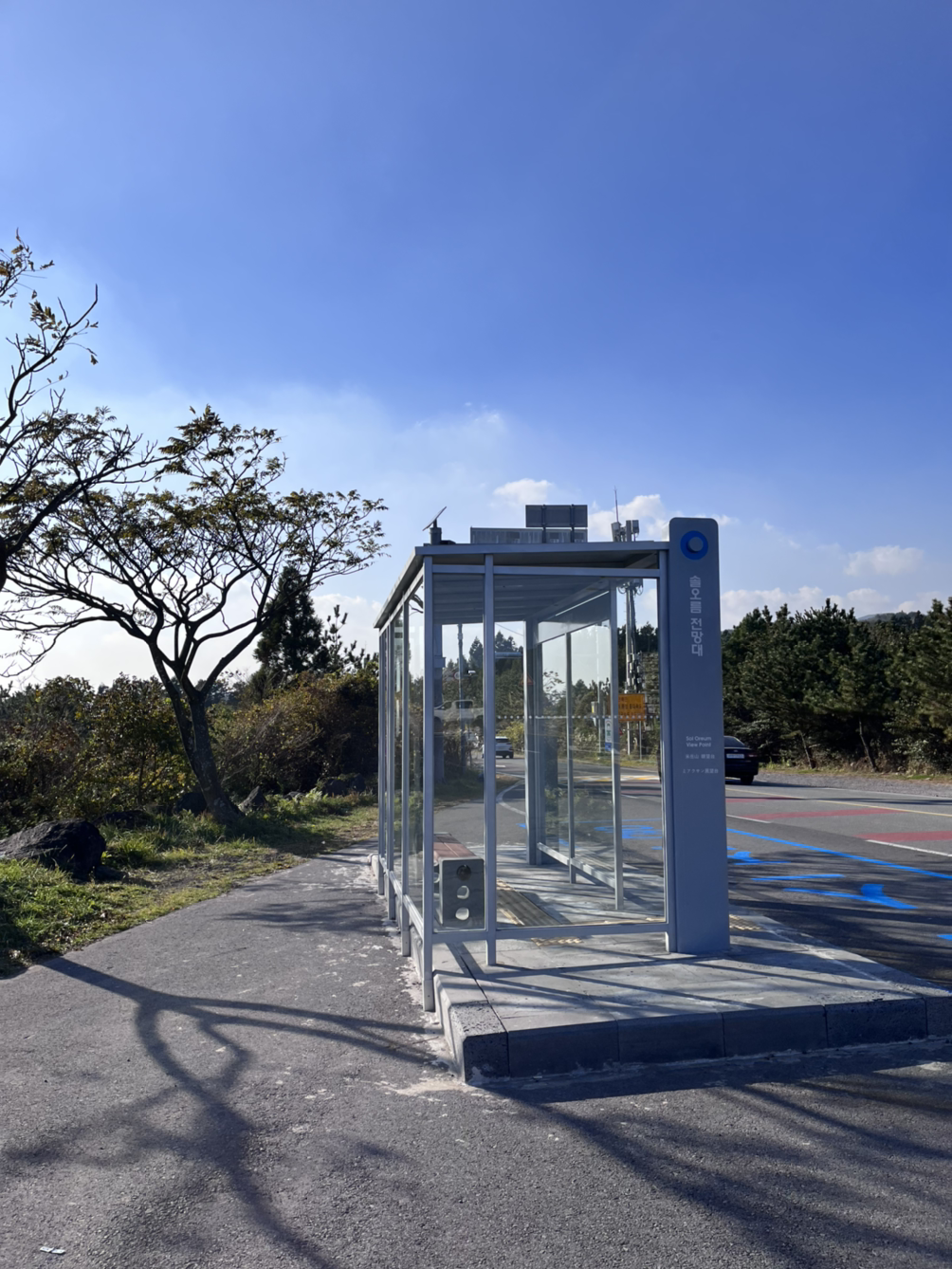 그런데 지도에서 알려준 버스 정류장이 약간 간이식이었는지 정류장을 발견하지 못해서 한참을 걸어갔다. '왔? 왜 정류장이 없지? 오늘도 오지게 걸을 거란 예고편이군.' 이란 생각을 하며 열심히 길을 따라 올라갔다. 그래도 가다 보니 백년초 박물관? 같은 것도 있고 (박물관이라기보단 작은 카페같이 생겼다. 계단 아래에 먼가 있는 거 같기도 하지만 시간을 보내긴 애매해서 지나쳤다.)