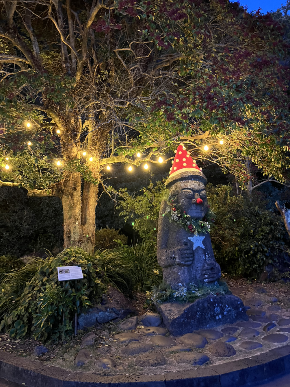 혼자 열심히 사진 찍으면서 다시 나오고. 나오는 길에 산타 모자 쓴 하르방도 귀여워서 셀카를 찍고 나왔다.