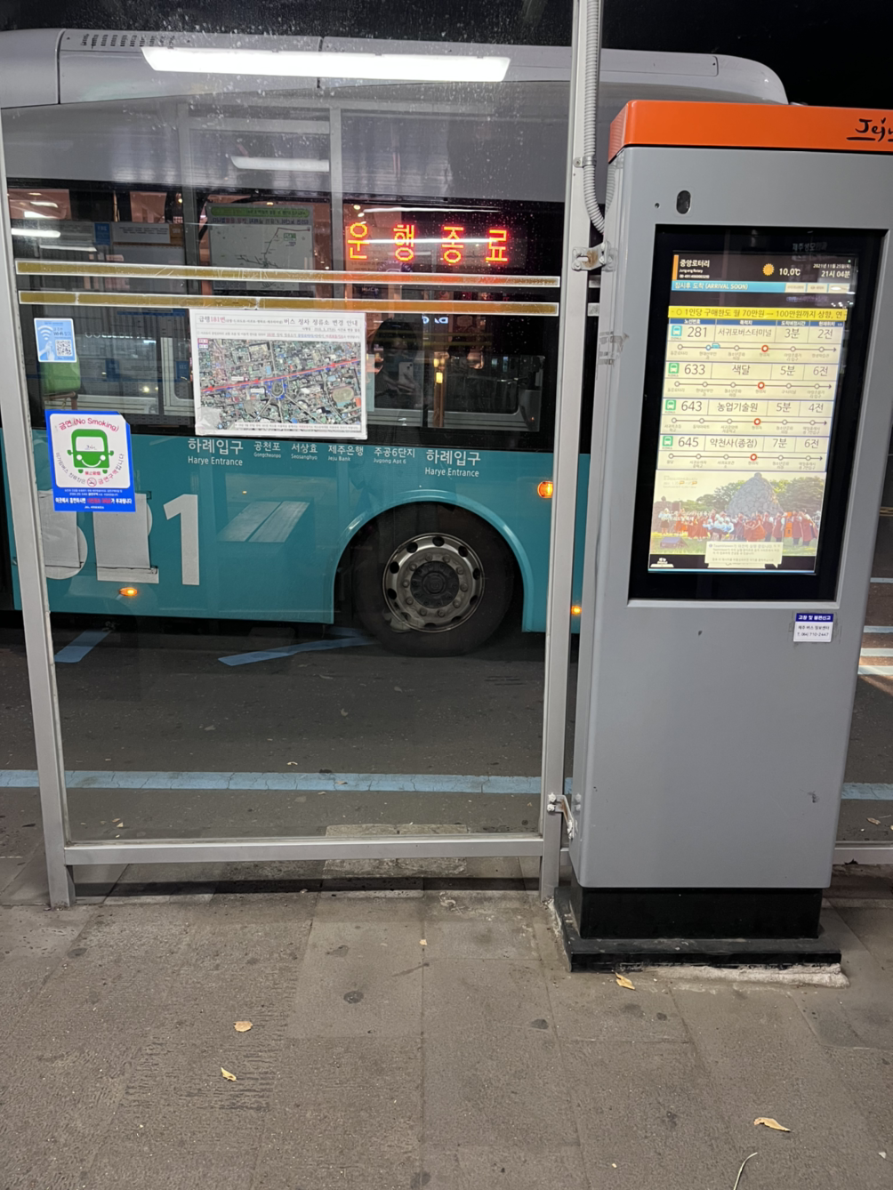 좀 더 가다 보니 드디어 정류장을 발견하여 버스를 반가운 마음으로 탈 수 있었다. 아무리 뚜벅이가 빨라도 속도는 뚜벅 <자전거 <전동 킥보드 <버스 <자가용 일수밖에 없는 것.