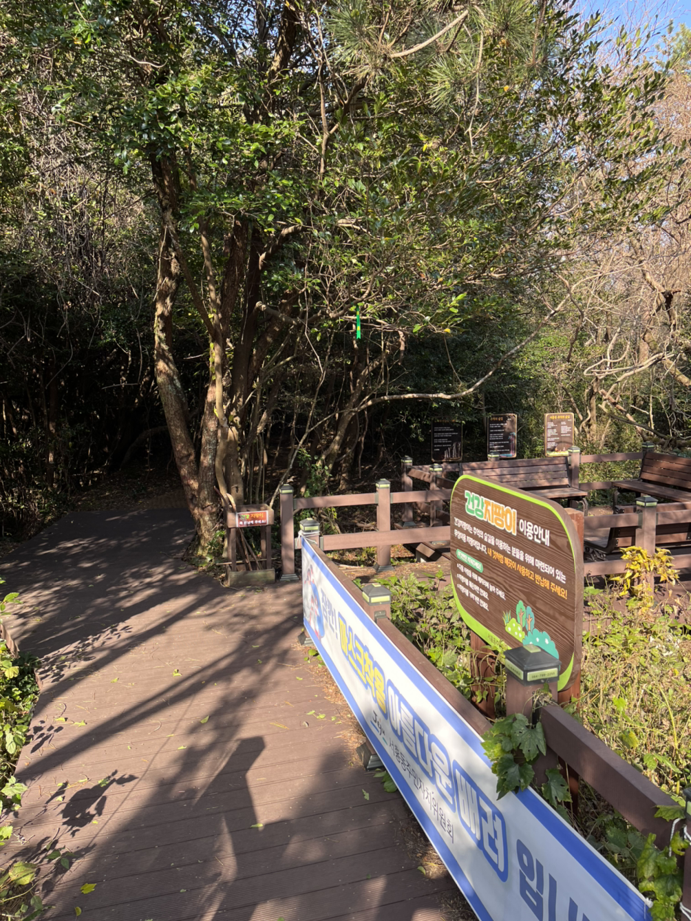 숙소 반대편으로 올라가기 싫어서( 너무 아스팔트 길) 바로 앞의 올레길 1코스로 걸으며 바다를 보고 도로변으로 다시 어기적어기적 올라가 한라산 치유의 숲으로 찾아가기 위한 여정에 올랐다.