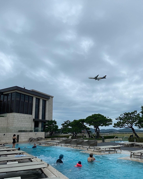 실외 수영장 역시 물 온도 조절로 비가 오나 추위가 몰아치나 재미있게 이용할 수 있음. 수영장 사이드에 자쿠지 여러 개를 마련해 한 곳의 자쿠지로 사람들이 왕창 몰리는 걸 방지했음. 각각의 자쿠지는 인피니티풀처럼 별도의 펜스가 없어 멋진 포토스폿이 됨. 호텔 바로 옆 인천공항에서 이륙하는 대형 여객기가 머리 위로 날아다니는 진풍경도 포토스폿을 형성함.