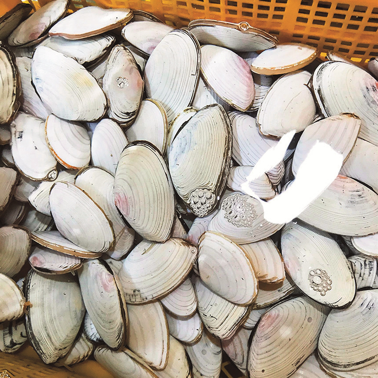 생긴 모양이 칼날처럼 날카로워 이름 붙은 칼조개. 접시조개라고도 한다. 속살이 부드럽고 달며, 비린내가 없어 회로 즐기기에 좋다. 회로 먹었을 때 쫄깃쫄깃 씹히는 식감과 짭짤하면서도 은은한 단맛이 일품. 물론 구이나 찜으로 요리해도 손색없다.