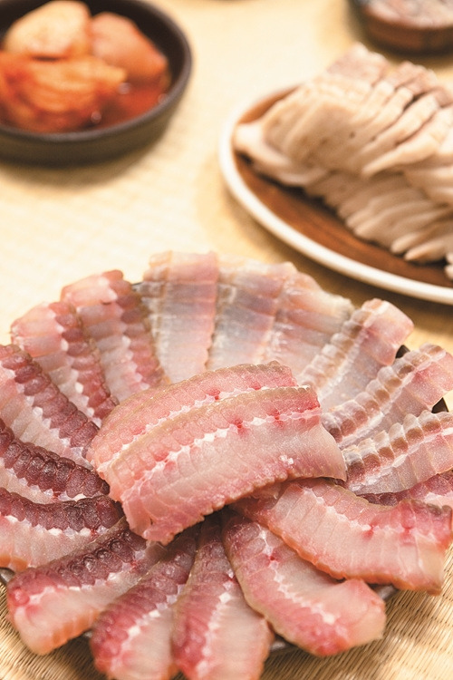 찬 바람이 불기 시작하는 이맘때부터 이듬해 2월까지는 모슬포 앞바다에 방어가 돌아와 별미를 선사한다. 방어는 겨울로 접어들수록 그 맛 또한 깊어진다. 차가운 수온을 이기기 위해 몸속에 지방을 축적하기 때문인데, 참치 뱃살에 견줄 만큼 고소하고 쫄깃하다.