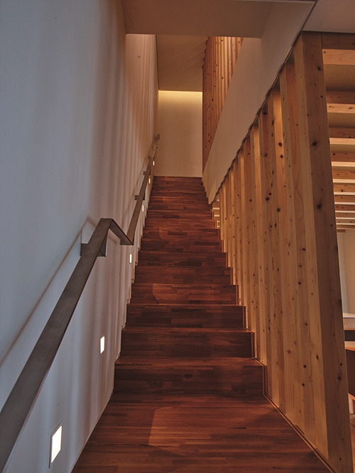 계단 조명은 계단 하나하나가 잘 보이도록 충분히 밝아야 하고, 위에서 내려다봤을 때 눈이 부시지 않아야 한다. 펜던트는 광원이 직접 시야에 들어오지 않게 하고, 브래킷은 관리하기 편하게 적당히 낮은 위치도 괜찮다. 요즘은 풋라이트를 계단의 메인 조명으로 설치하기도 한다. 단, 바닥에 광택이 있으면 램프가 반사돼 눈에 좋지 않으므로 계단 소재나 마감에도 신경 써야 한다. 색온도나 조도는 약간 낮아야 안정감이 느껴진다.