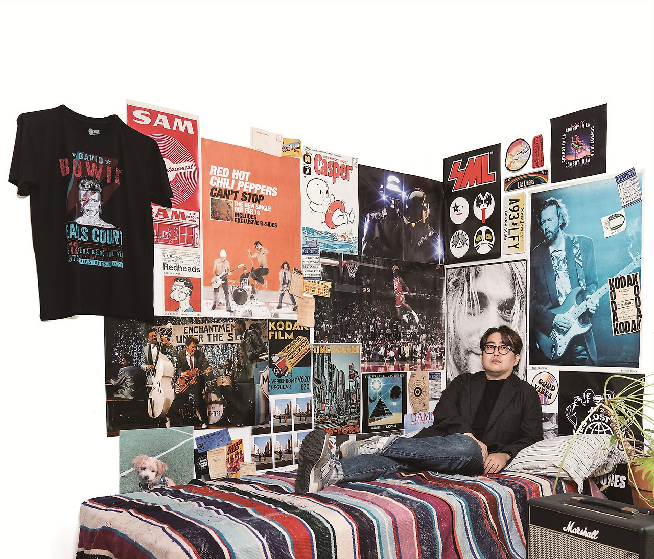 작업실에 록 밴드 음반과 포스터가 많아서 놀랐어요