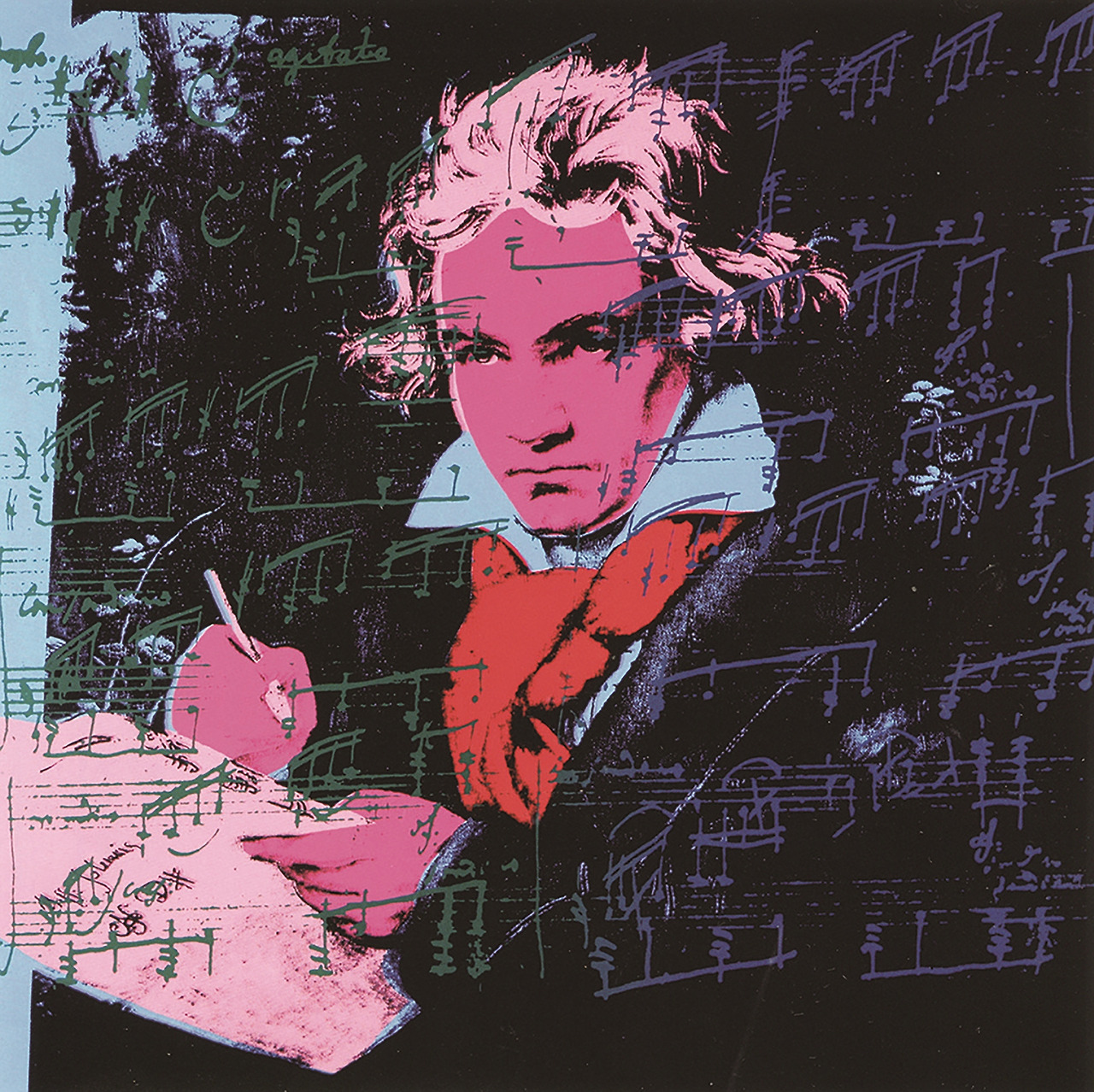 ‘베토벤’ 시리즈는 초상화 위에 악보 한 장을 배치하여 작곡가의 특징을 드러낸다. 작품에 등장하는 악보는 베토벤의 ‘문라이트 소나타’로 잘 알려진 소나타 14번이다. 이미지의 배경이 검은색이어서 한 남자가 어둠에서 떠오르는듯한 인상을 남김으로써 고전 작곡가를 현대 록 스타로 변형시켰다.