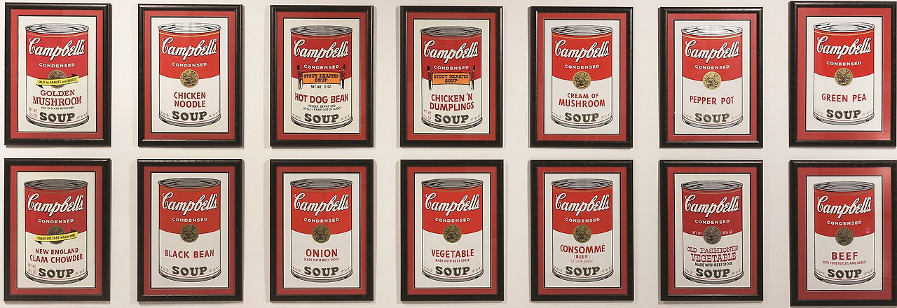 워홀은 정물화의 과일들이 아닌, 더 친근한 것에 관심이 있었다. 부엌에 있는 통조림 같은. 그중 토마토 캔은 가장 좋아하는 것이었다. ‘캠벨 수프’가 공개되자 예술계는 충격에 휩싸였다. 하지만 워홀은 캠벨사가 보유하고 있던 32종의 수프로 실험을 계속해나갔다. 각 수프의 독창성에 대해 고민했고 흰색 배경 위에 단 하나의 제품만을 놓았다. 그러다 많은 사람이 이 작업이 의미 있다고 여기기 시작했고, ‘컬러의 미니멀한 표현’이라는 평가도 얻었다.