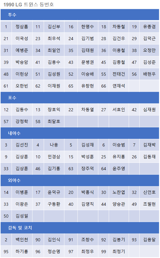 <1990 LG트윈스 골든글러브 수상자>