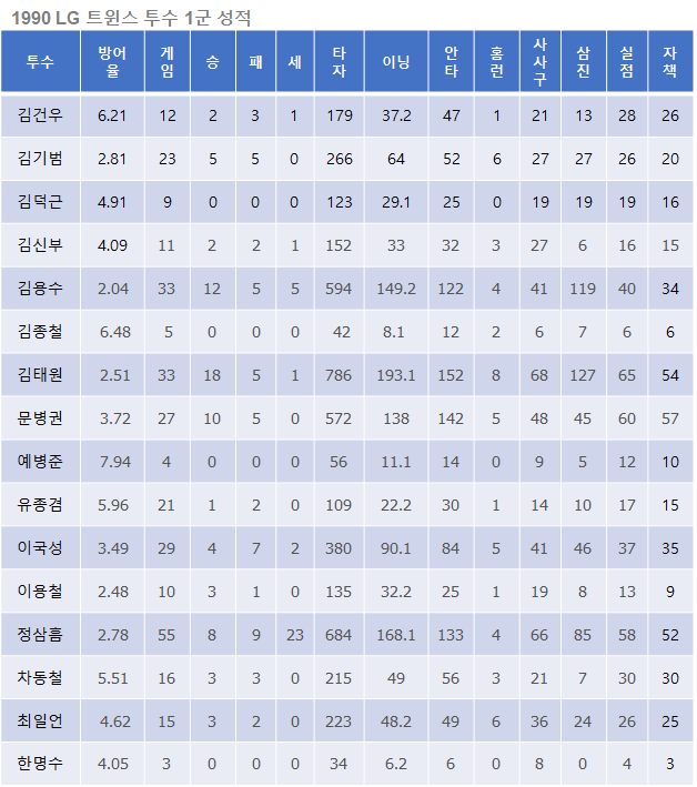 김용수 : 평균자책점 3위 (2.04), 다승 9위 (12), 세이브 8위 (5)