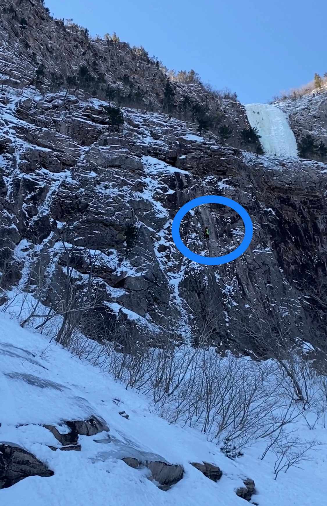아니 혼자서? 이것이 말로만 듣던 프리솔로? 아니면 우회해서 올라간 다음에 줄 내리고 빙벽 연습을?
