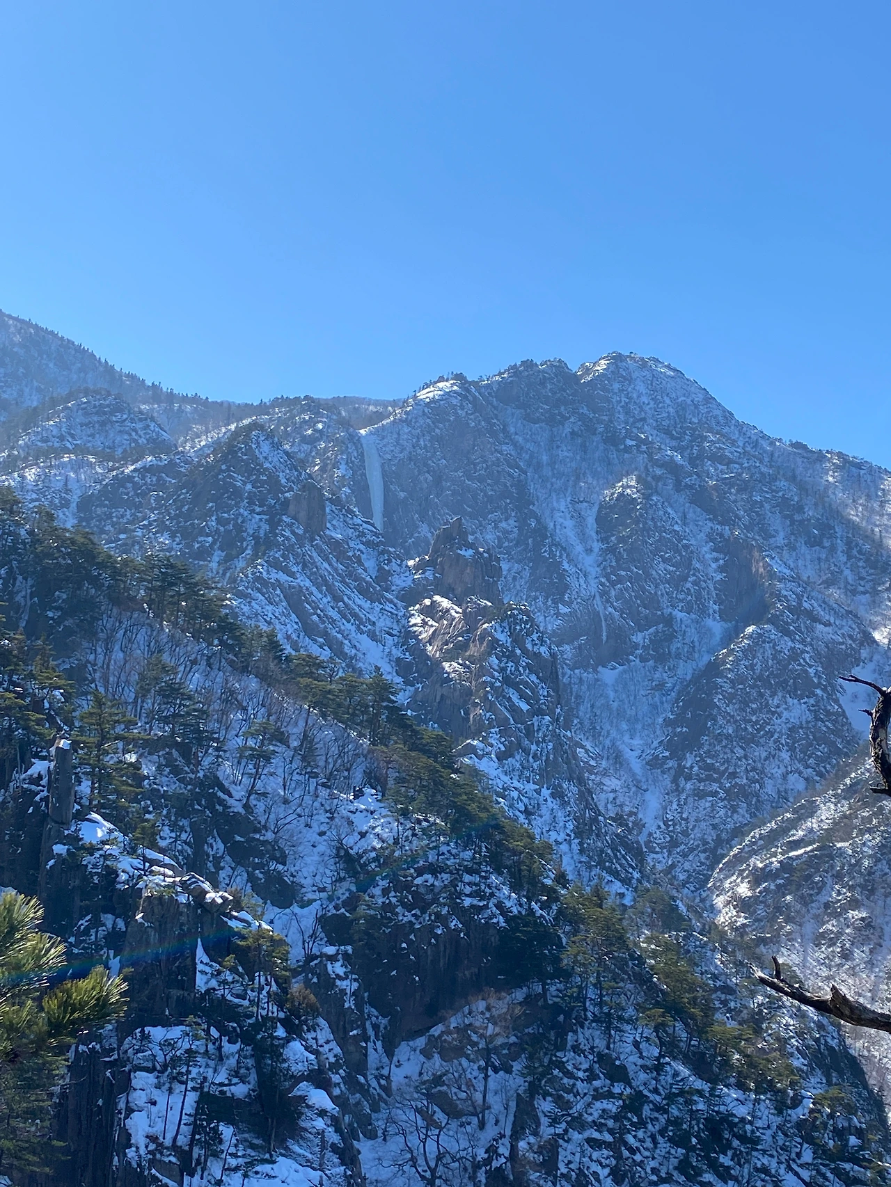 겨울이 가다니 무슨 소리. 아직 꽝꽝 얼어붙은 한겨울의 설악산이 우리를 맞아주었다.