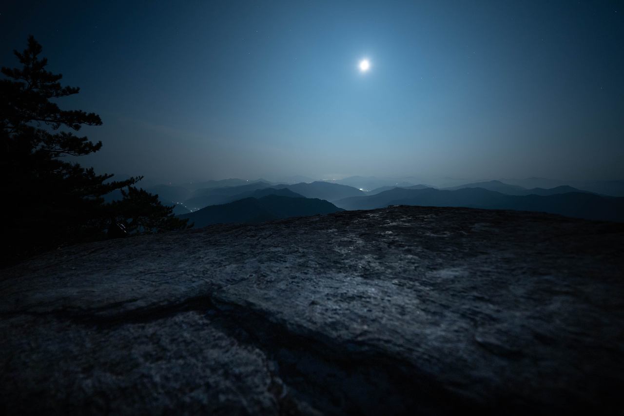 북쪽을 가로막고 서 있는 백덕산 봉우리가 불필요하게(?) 환했다. 신선바위봉 정상에서 혼자 텐트 없이 보내는 하루밤. 퍼런 형광색 달빛 아래 묘하게 들떠 보이는, 살짝 흥분된 산의 빛깔이 어딘가 비현실적이고 무서웠다.