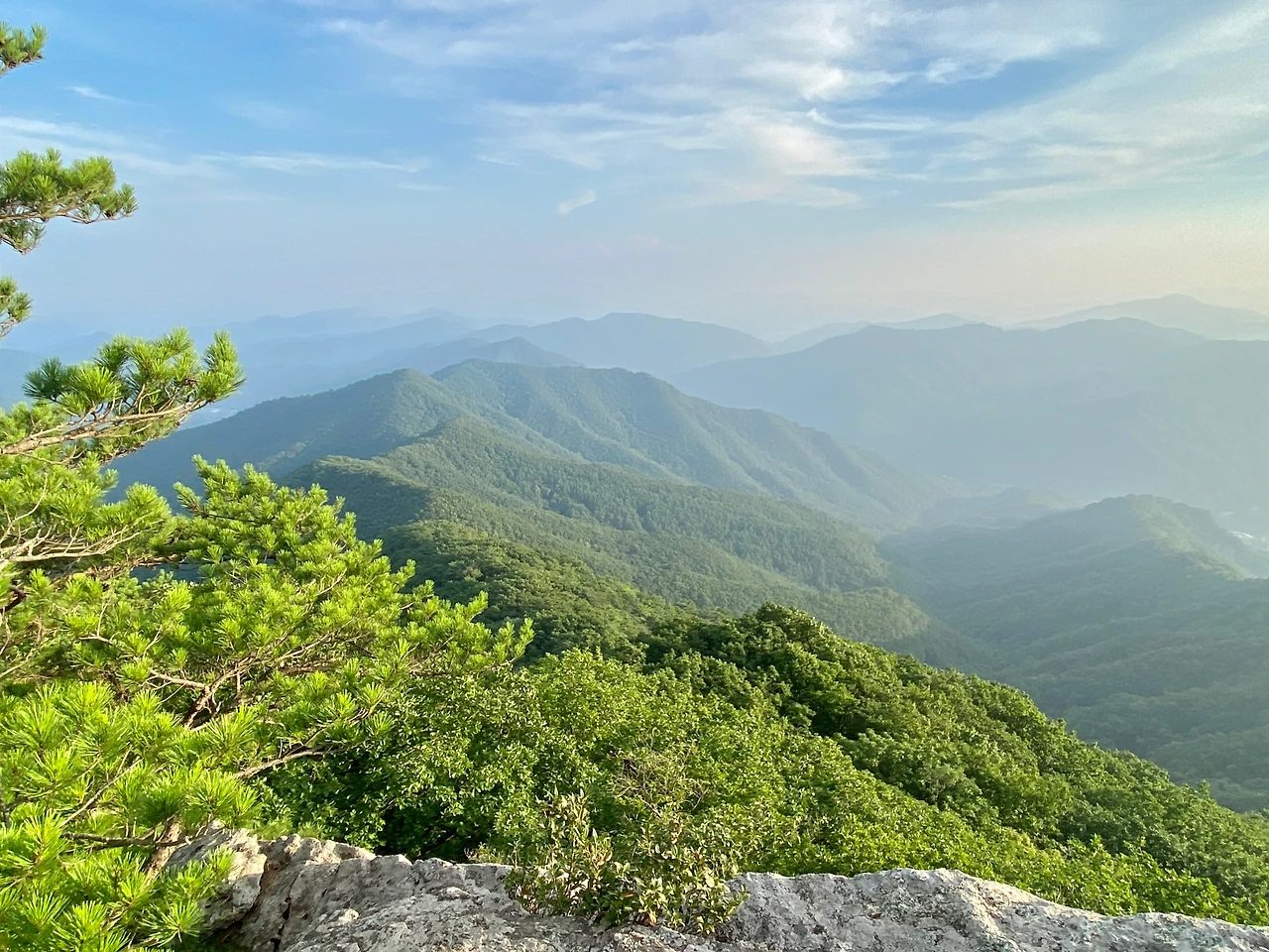 저 뒤에 가장 높은 백덕산 정상은 아직 2km 정도 남았는데, 저기도 조망이 좋다는 소문을 들어보긴 했지만 이 더위에 도저히 엄두가 나지 않는다. 이미 지쳤고, 맥주가 너무 마시고 싶다. 배낭에 넣고 다니기는 무거운데 온도는 차갑고 마시고 싶다. 이보다 더 최악의 조합이 있을까? 다음부턴 산행 의지를 무력화시키는 차가운 맥주 따위는 절대 들고 다니지 말자 생각하며 한 캔을 땄다.