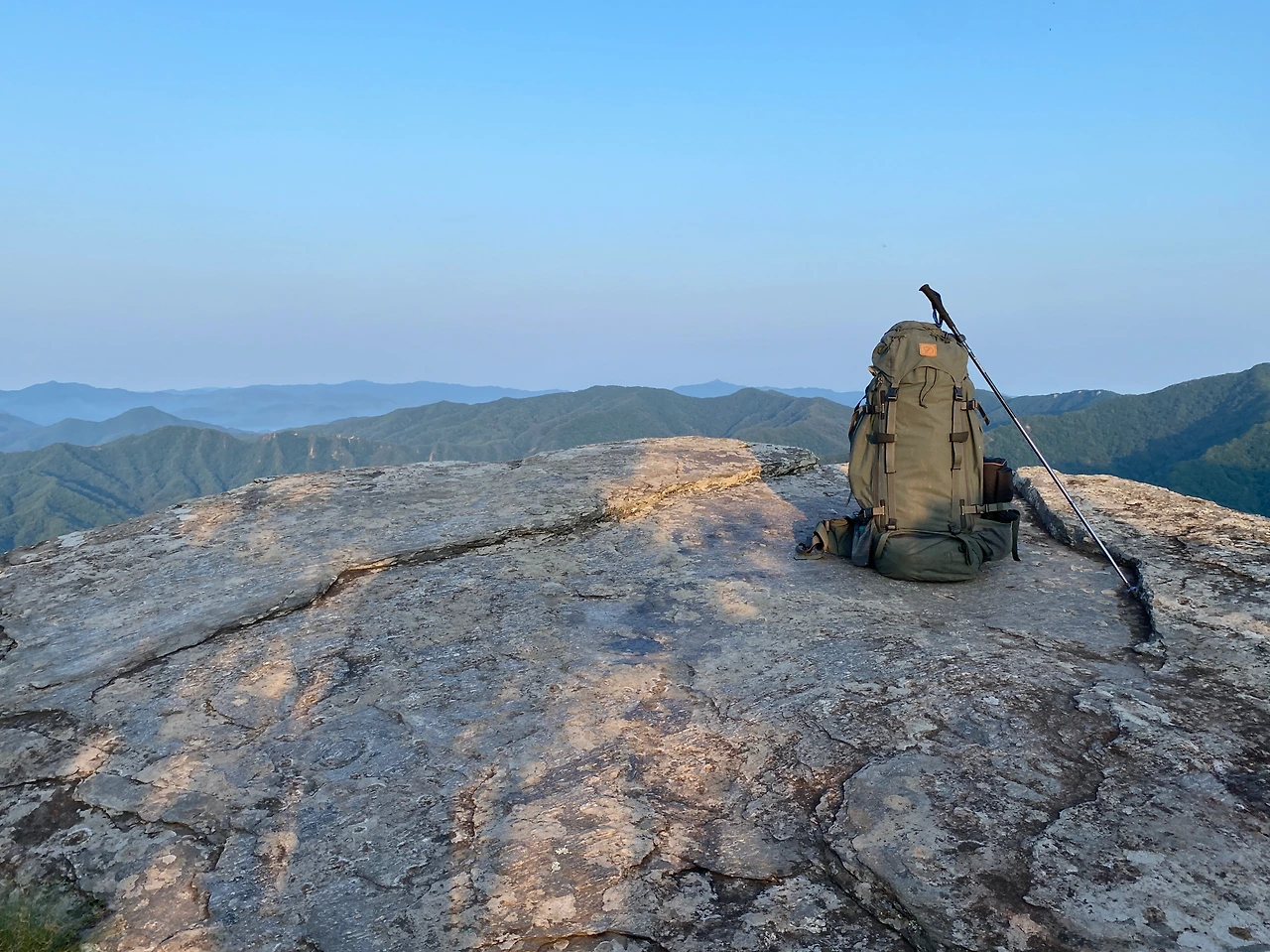 내가 달빛을 무서워하는 건가? 환한 달빛과 고라니의 울음소리에 밤 늦게까지 잠을 이루지 못했다. 바람도 많이 불었다. 억지로 자려고 잠을 청하면 숲속에서 뭔가 돌아다녔다. 그래도 이곳은 요새처럼 몇 미터 위로 솟아있는 바위 꼭대기라 지난 주 산행처럼 무슨 큰 동물이 갑자기 나타날 것 같진 않았다.