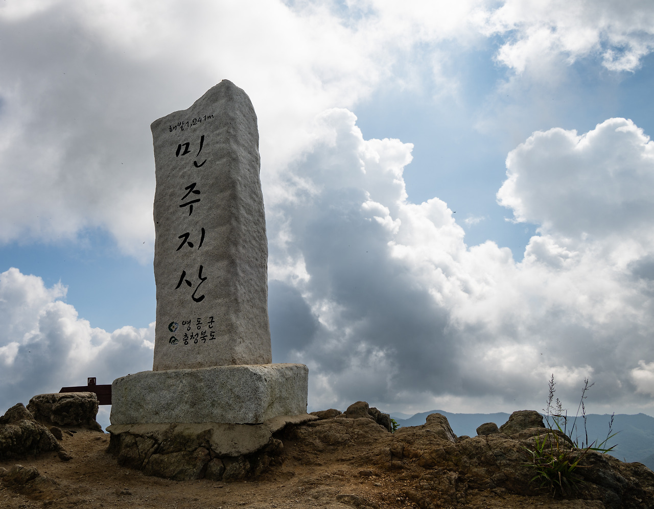민주지산 정상석은 너무 거대했다. 나는 이런 거대한 정상석이 참 멋대가리 없고 산의 분위기를 해친다고 생각한다.