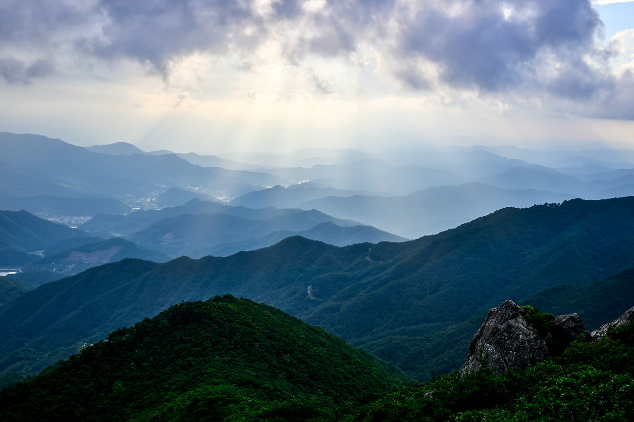 그 양쪽을 굽어보며 민주지산과 석기봉은 묵묵히 서 있을 뿐이다.