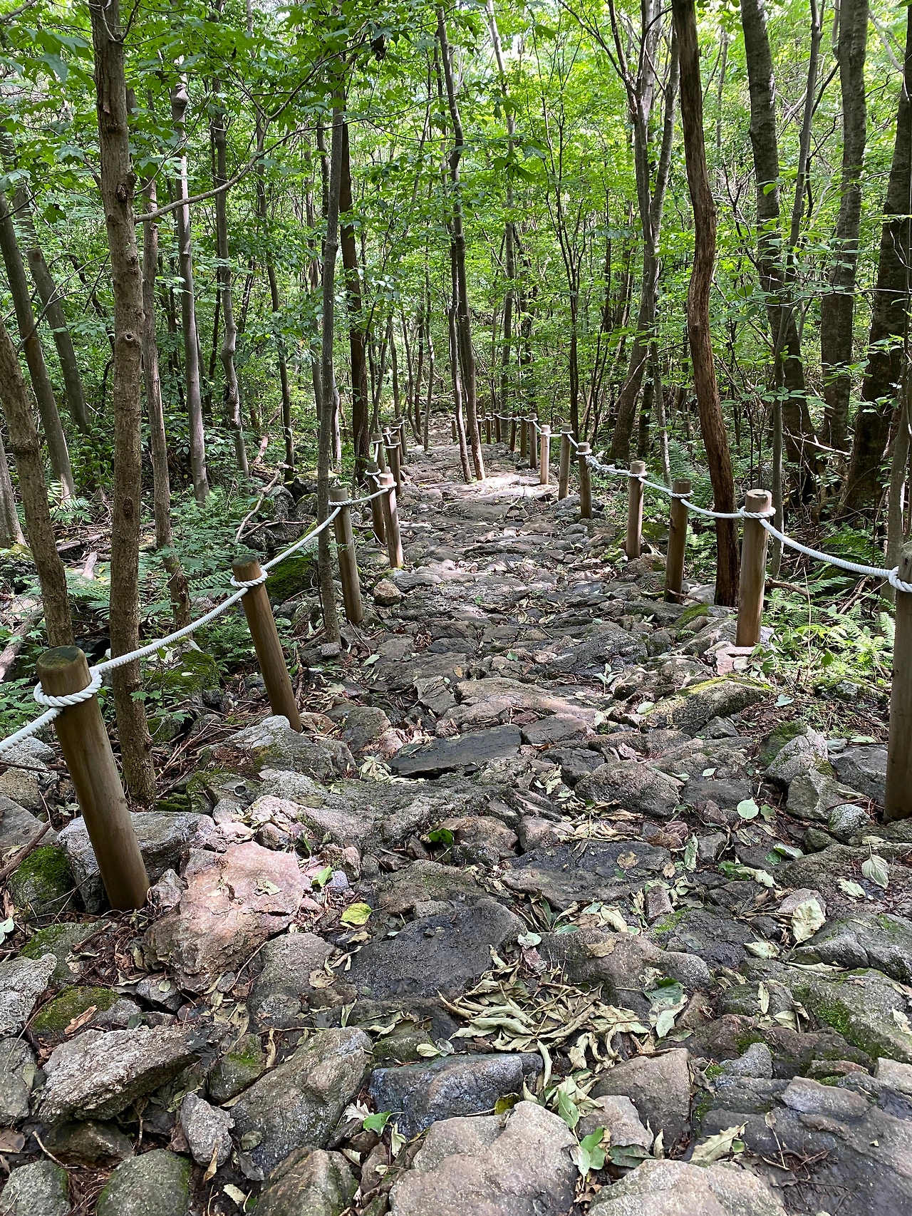 매번 이렇게 긴장할 거면서 왜 자꾸 산에 오는지는 모르겠다. 아무튼 올라가보니 길은 너무너무 쉬웠다. 일설에 의하면 이 길이 과거 신라와 백제를 넘나드는 통로였다고 한다. 정식으로 국경을 넘나들기 어려운 사람들이 백두대간을 동서로 넘어다니는, 이를테면 밀입국 경로였다는 거다. 사실 여부는 모르지만 그럴 만도 한 게 석기봉이 있는 주능선까지 엄청 짧다. 박배낭을 메고도 두 시간 반 정도면 되었다.