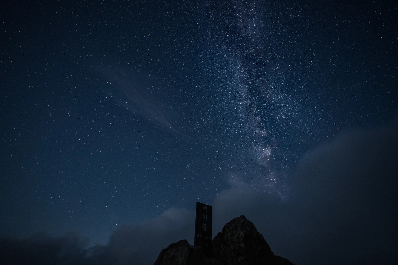 그렇게 얼마나 앉아 있었을까. 어느 순간 머리 위 구름이 걷히며 하늘이 열렸다. 옆쪽 사방은 여전히 아무것도 보이지 않는 짙은 구름의 띠. 그 구름이 속세의 빛 공해를 다 차단해주어 그믐에 가까운 밤하늘이 그대로 머리 위로 드러났다. 금박 은박 종이꽃가루 같은 수많은 별이 그 안에 반짝였다.