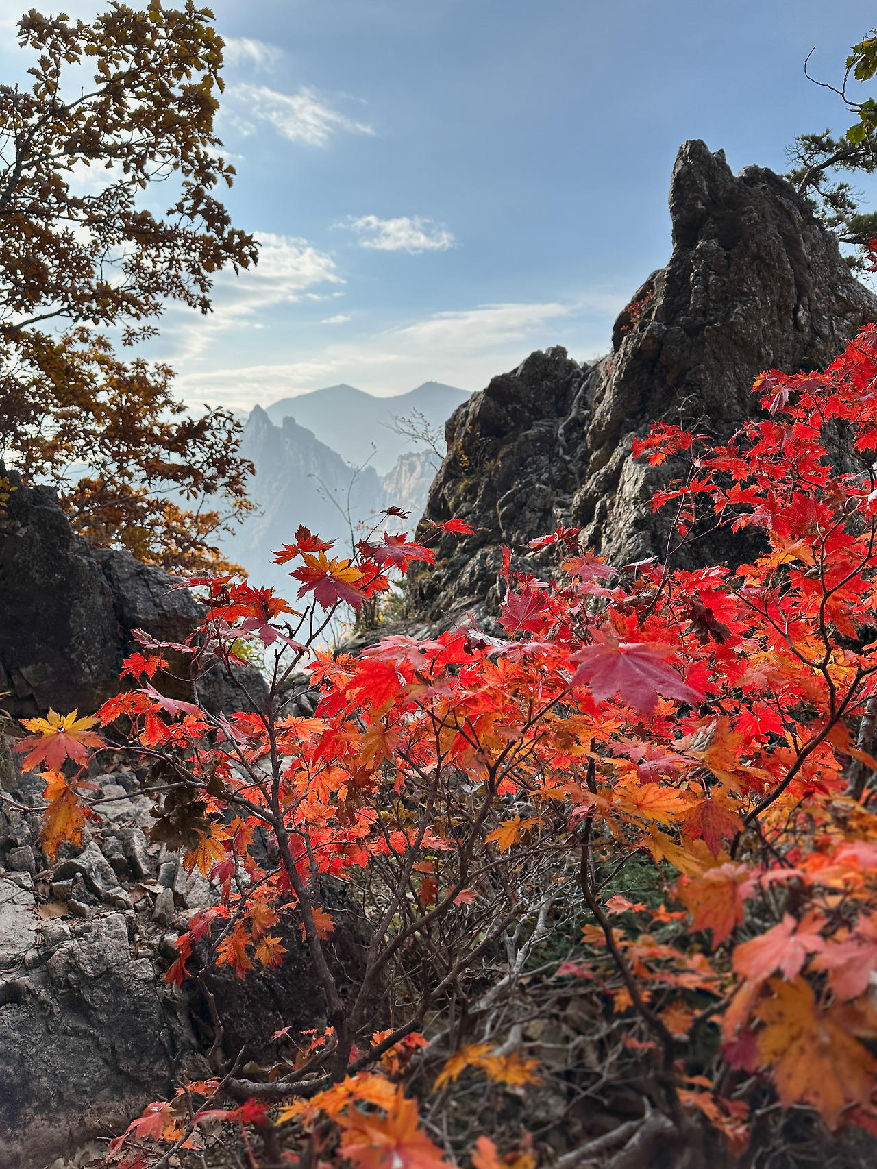 단풍이 이렇게 예쁠 줄은 몰랐다. 지난 몇 년의 단풍보다 올해가 훨씬 곱다. 내 주위의 다른 등산객들도 다들 그렇게 동의한다. 올해 설악산 단풍은 정말 예쁘다.