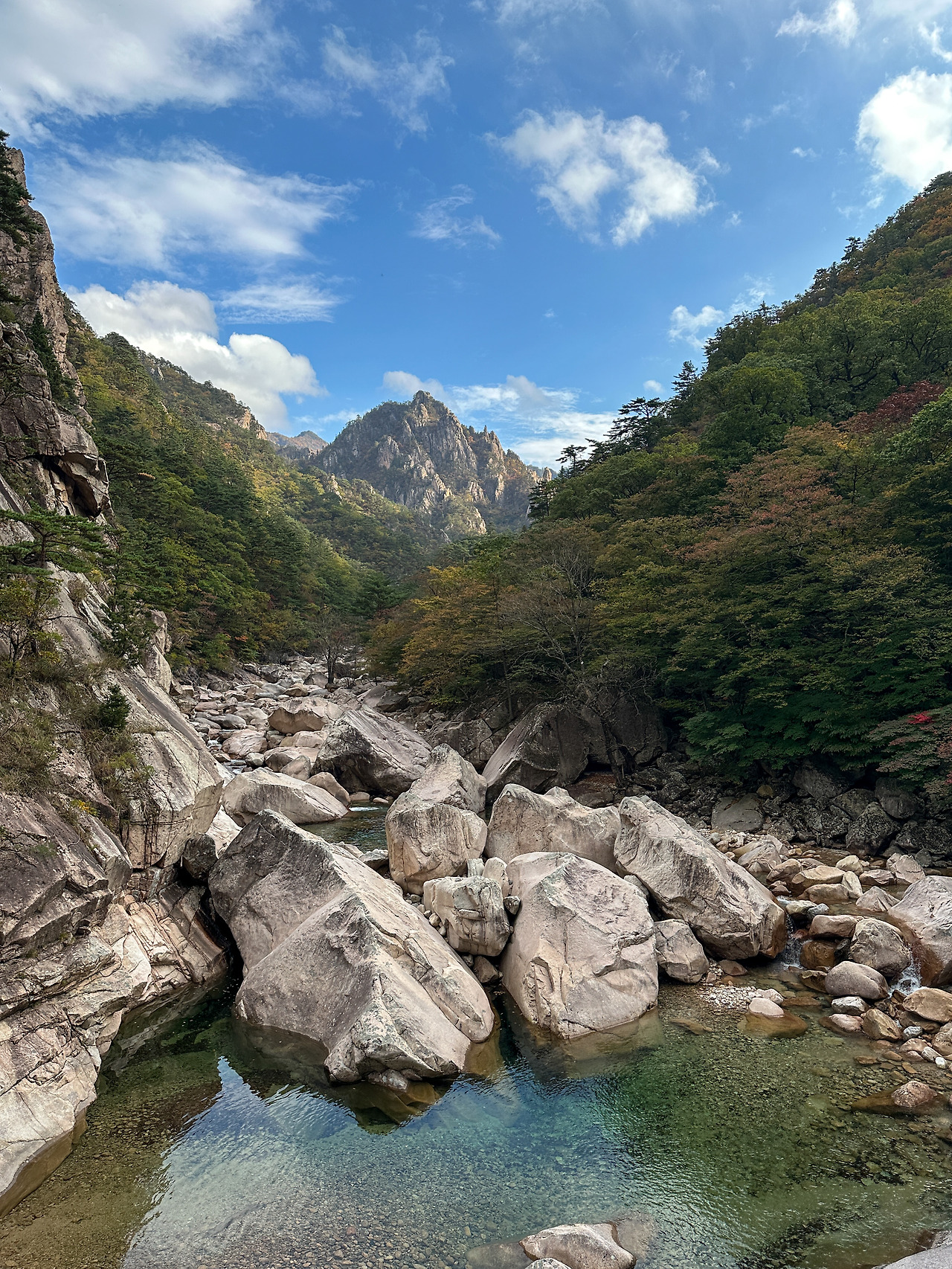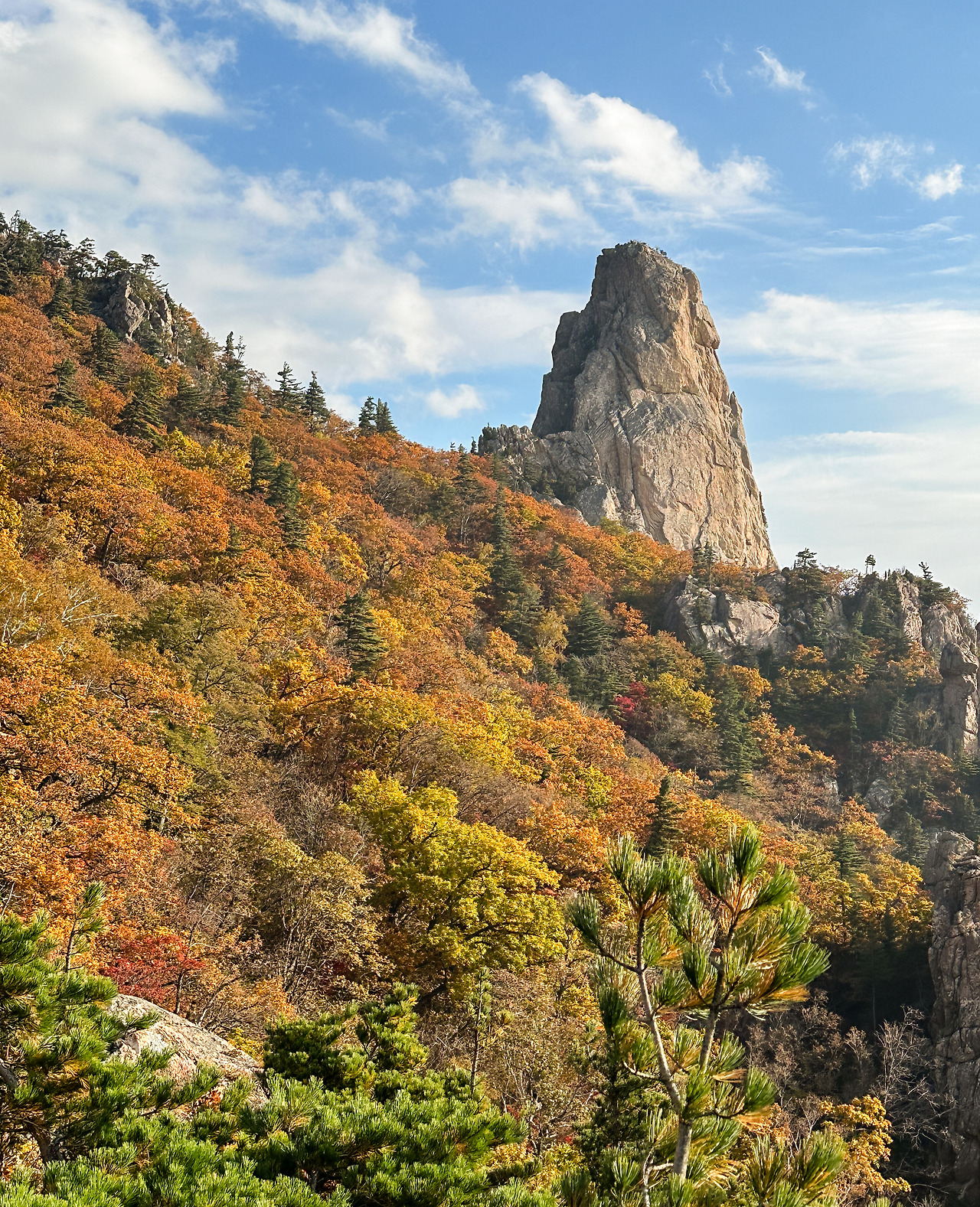 어떤 면으로 보아도 이보다 더 좋을 순 없다. 2년 전 나뭇잎 다 떨어진 늦가을의 북주능을 걸으며, 단풍잎 알록달록한 바위 봉우리들을 상상하며 아쉬워한 적이 있다. 너무너무 예쁠 것 같았다. 그런데 이제 드디어 그 때가 온 것이다. 단풍물을 흠뻑 머금고 비에 깨끗이 씻긴 북주능!